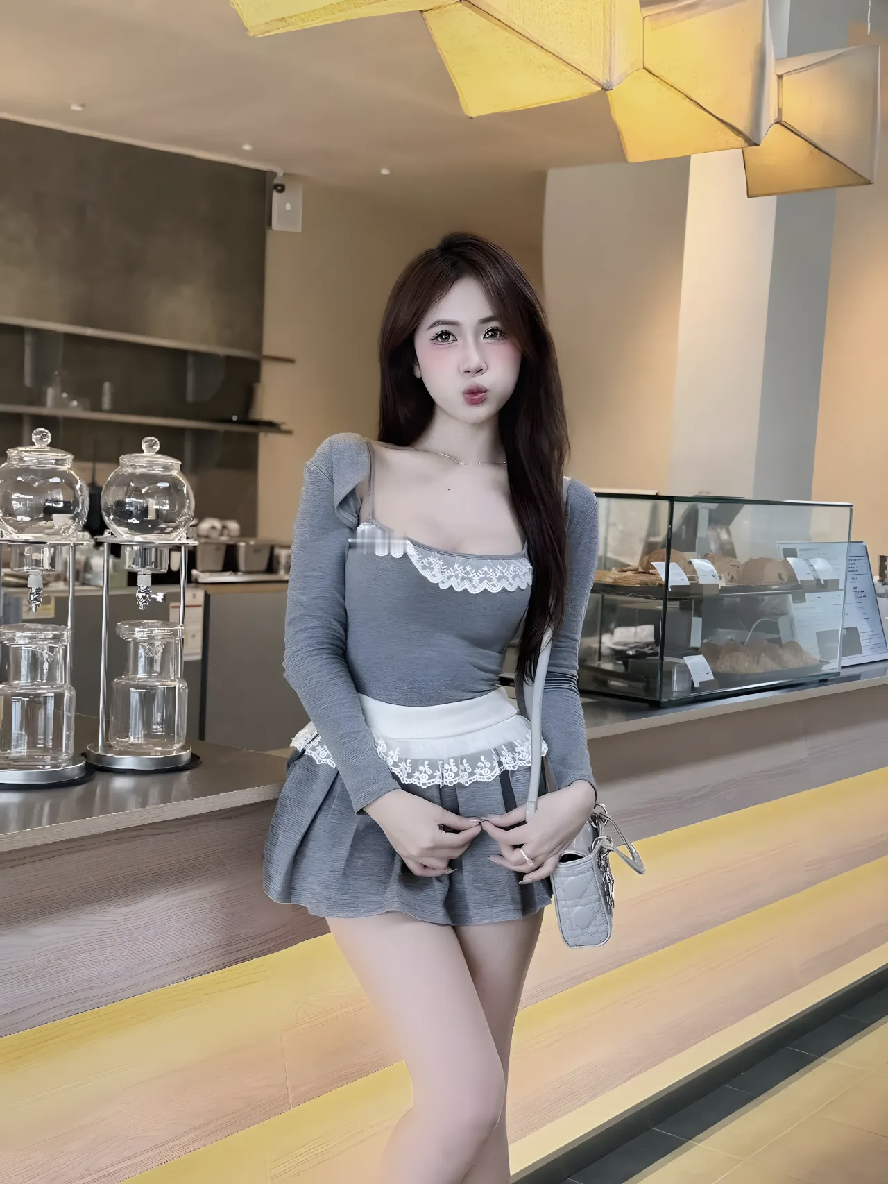 最近时髦发现了一位优雅端庄的长腿美女,来和朋友们分享一下。这位美女她有着棕褐色的垂肩秀发,妆容精致,唇色淡雅,眼神明亮且富有魅力。她身着灰色蕾丝拼接套装,上衣的蕾丝领口与裙装的蕾丝腰边尽显甜美,搭配白色尖头平底鞋和浅灰色手提包,优雅又时尚。她在户外休闲座椅上姿态优雅,尽显时尚美感,在室内温馨场景中又展现出柔美的一面,散发着都市女性的迷人风韵,尽显她对时尚与生活的独特品味,让人着迷。话不多说,就让我们一起来欣赏一下吧!温婉大方的美女 落落大方的美女 修长腿美女 下班路上的美女