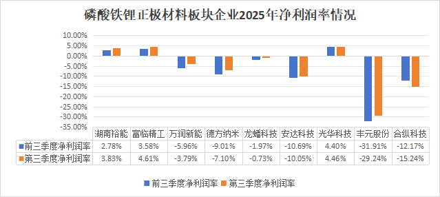 9家磷酸铁锂企业中仅湖南裕能、富临精工、光华科技3家企业实现盈利,其分别盈利6.45亿元、3.25亿元、0.90亿元,3家企业盈利总额为10.6亿元。另有6家铁锂材料企业前三季度出现亏损,亏损总额达18.48亿元。