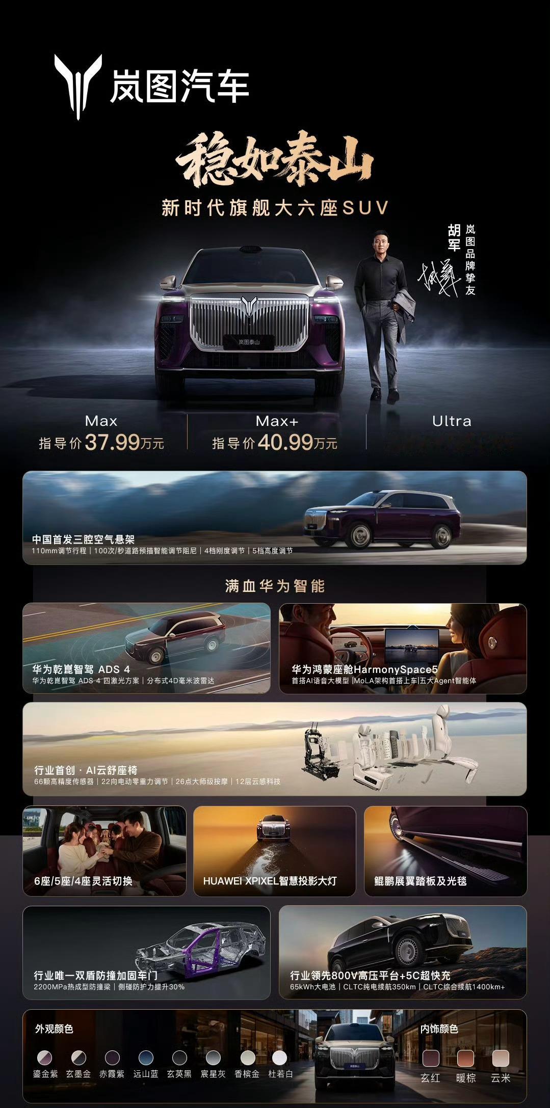 岚图泰山价格37.99万起,上市仅21分钟大定订单就突破了10000台,起飞了!