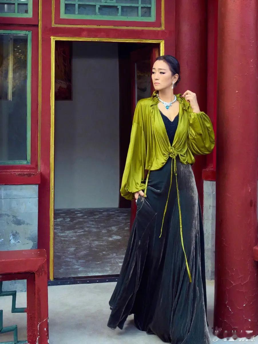 59岁巩俐换风格后直接美出新高度!一袭绿绸衬衫搭配丝绒长裙,将优雅与高级感融合得