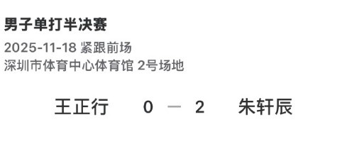 朱轩辰2-0王正行,挺进全运会羽毛球男单决赛,将和翁泓阳争冠