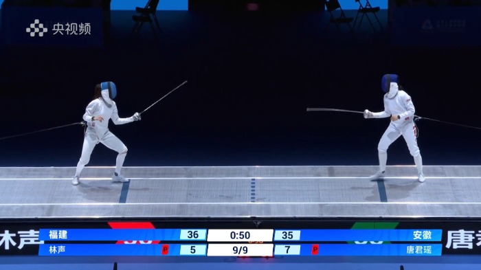 决赛共进行9轮,最后一轮,唐君瑶一度将比分追到只差一分,但福建队此前刚刚获得本届全运会女子重剑个人冠军的林声也状态正盛,守住了福建队的胜利果实,最终安徽女子重剑憾负,获得亚军。