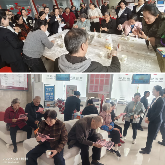 有奖问答和包饺子快问快答环节更是将活动推向高潮。“遇到自称‘养老服务机构’推荐高收益项目该怎么办?”“网购后接到‘退款’电话要验证码,能给吗?”主持人的问题刚抛出,现场客户便踊跃举手作答,答对的客户获得了暖冬小礼品。大家在轻松的互动中巩固了金融防骗知识,真正实现“学在其中、乐在其中”。(李叶红)