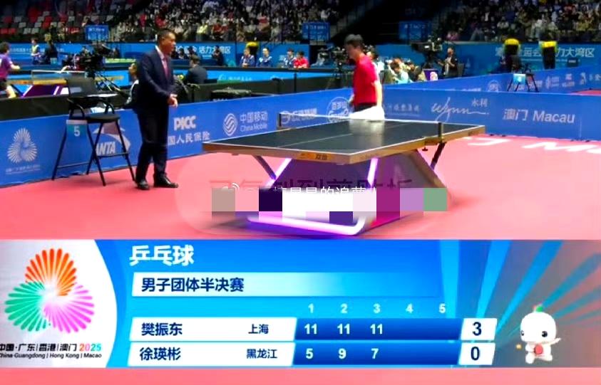 全运会: 樊振东今天秀了了一下他的绝世好腰, 弹跳原地起飞, 有点像倒放, 真是要震惊到了。 樊振东3:0徐瑛彬, 帮助上海队又进一步。