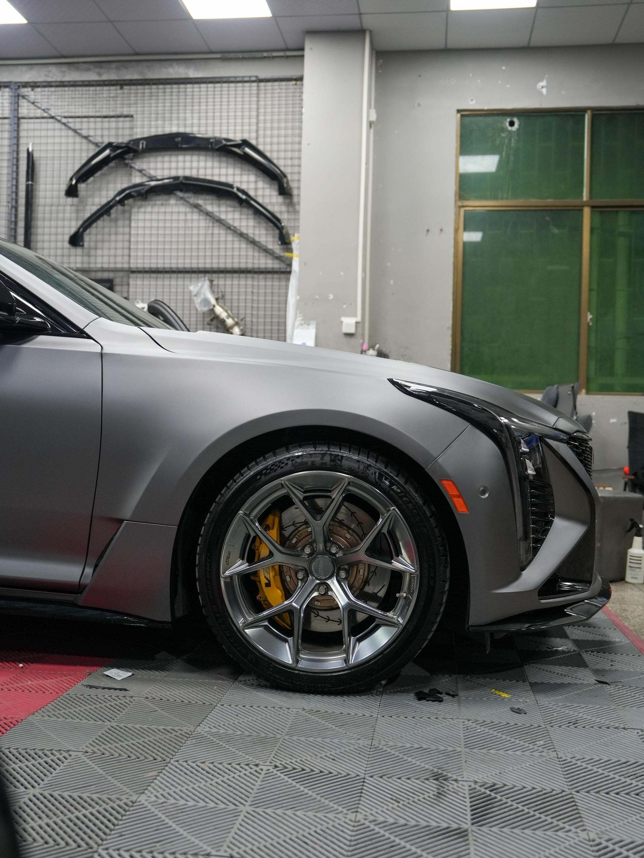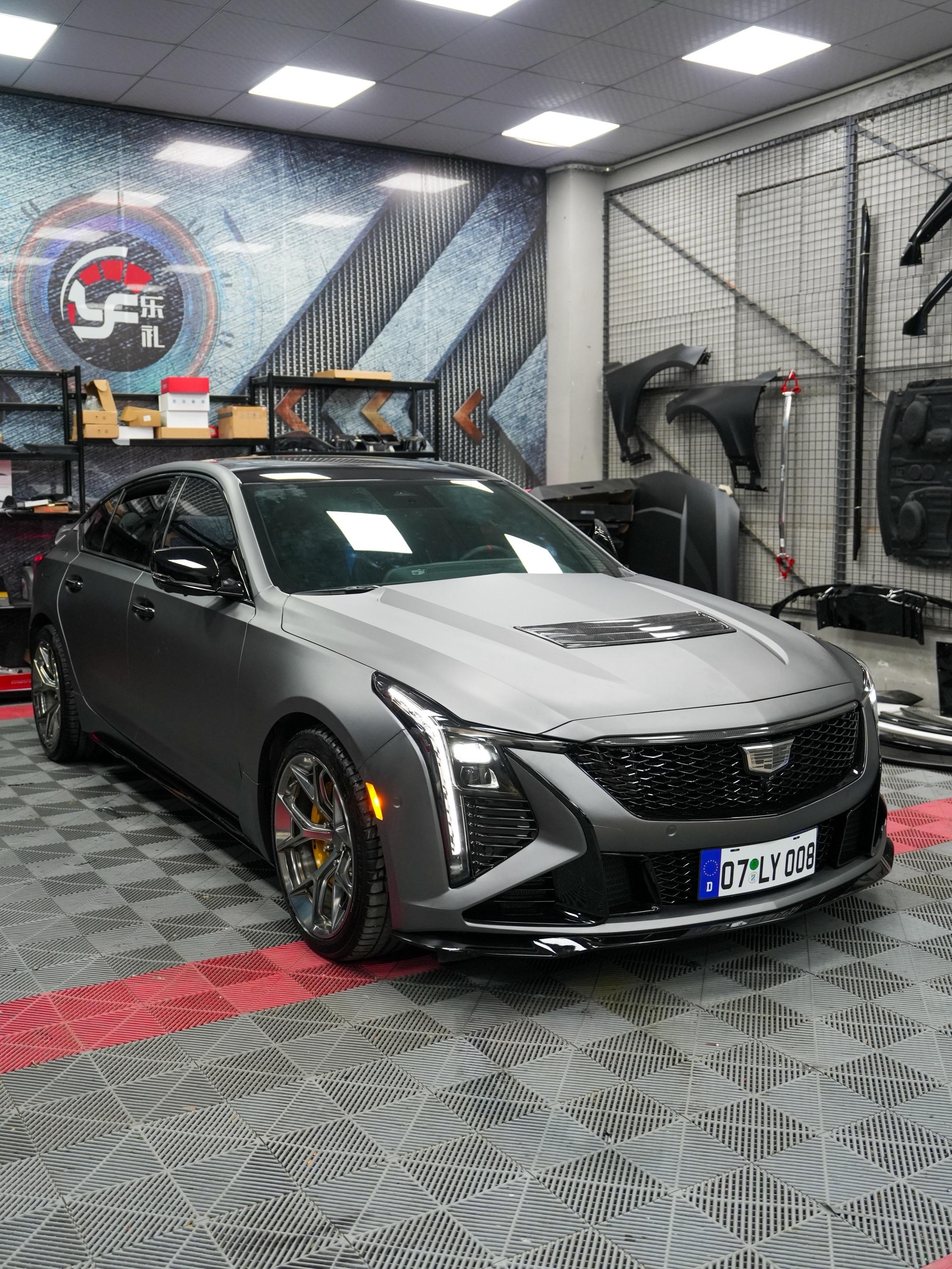 凯迪拉克ct5 飓风亚光灰搭配黑鹰包围。