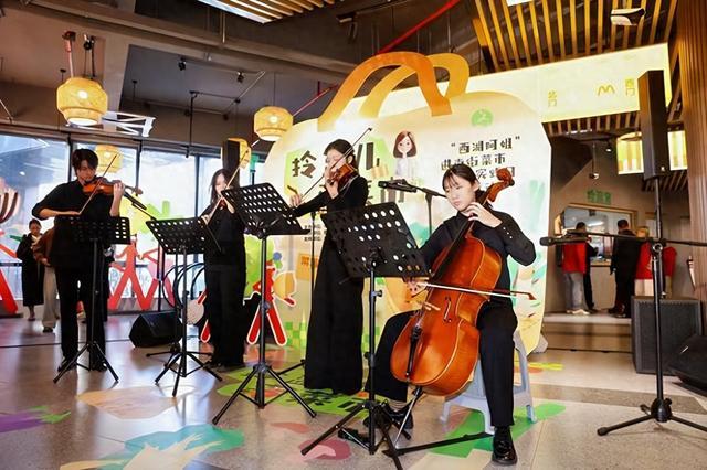 弦乐四重奏走进社区?不仅如此,文艺展演、互动体验、便民服务都可以一同出现在家门口的菜场中。11月18日,“西湖阿姐进菜市”在西湖区转塘南街菜市举行,一连串文明实践体验为菜市烟火注入艺术与人文气息。