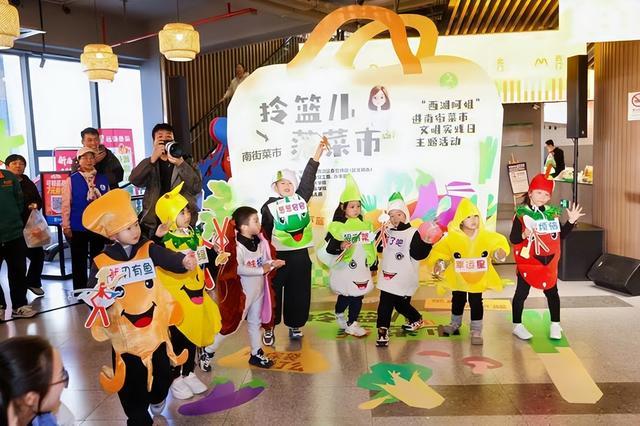 活动在浙江音乐学院学生带来的弦乐四重奏《烟火弦歌》中拉开序幕。“西湖阿姐”们身着定制围裙、手捧蔬菜花束,以一段轻盈舞蹈《古韵醉东方》展现新时代女性风采。菜市商户宣讲队则用原创三句半《我的菜市我来推》,生动传递诚信经营理念,表达共建美好菜市的决心。此外,8名来自转塘幼儿园的“赶集萌宝特工队”成为亮点。孩子们身着蔬菜水果服饰,与菜市IP形象“转塘赶集特工队”呼应,通过趣味猜名互动,展现转塘人群像多元共融的特色。