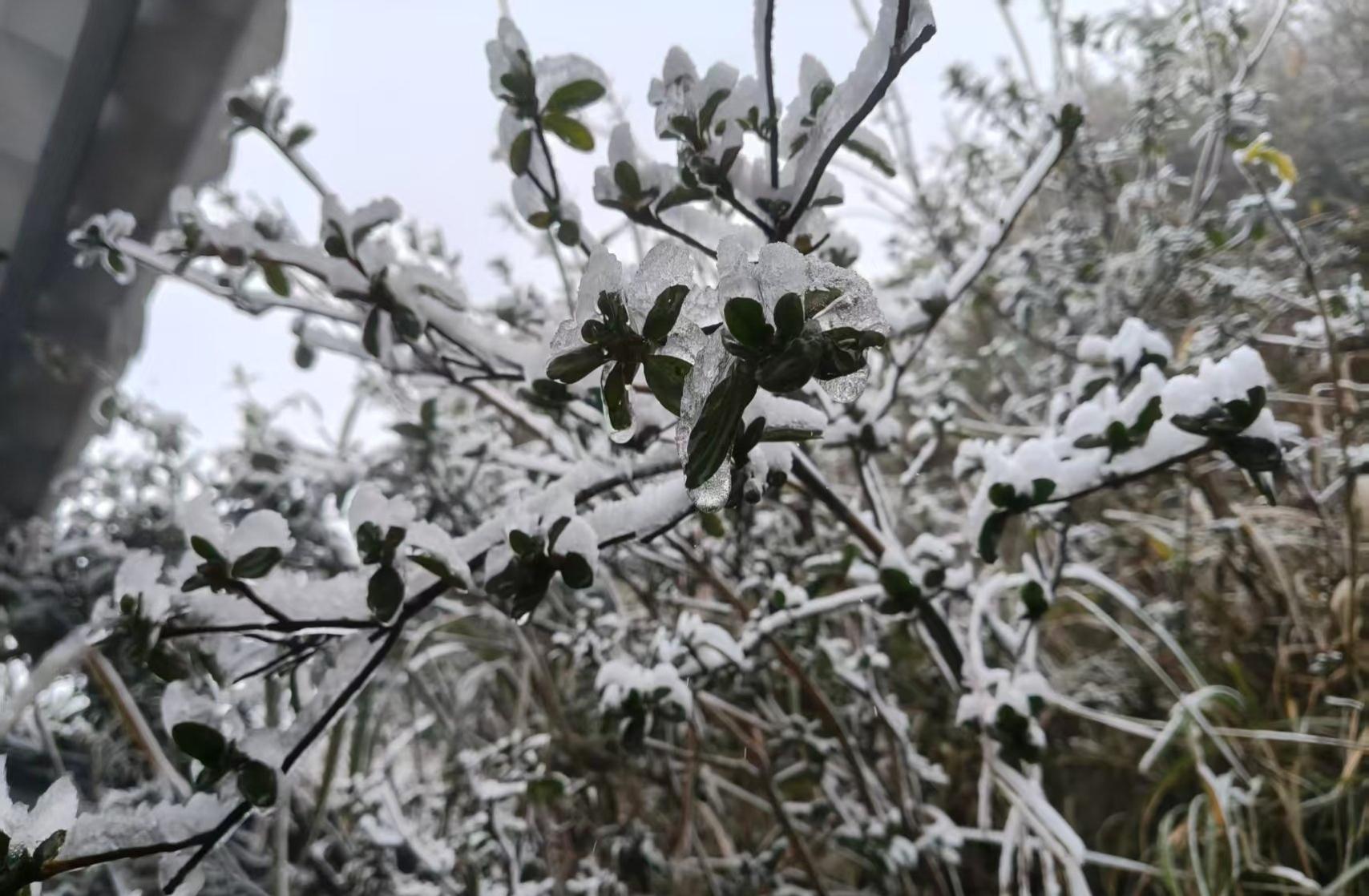11月18日上午,清远连山壮族瑶族自治县金子山出现入秋后首场雾凇冰挂。金子山景区供图