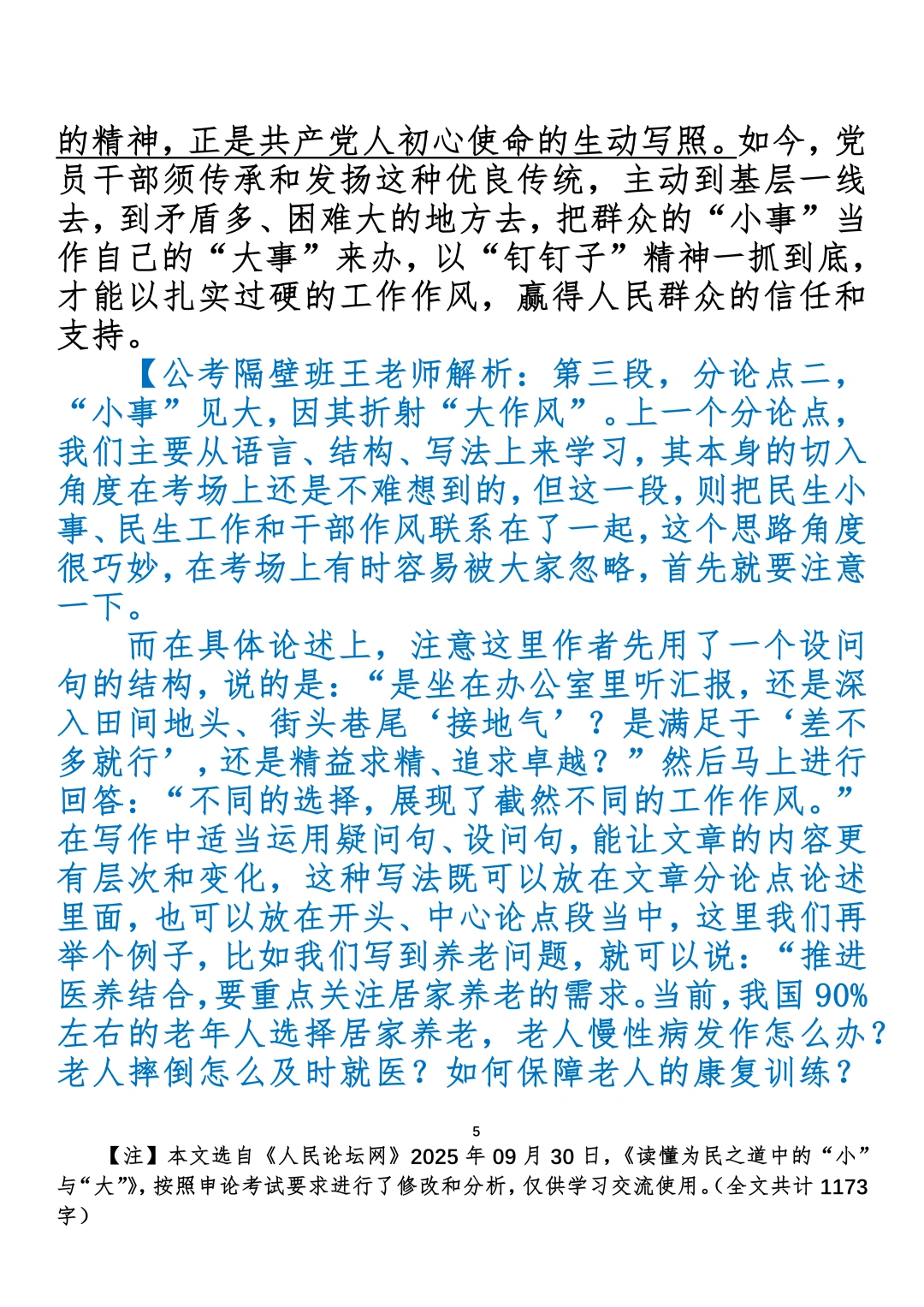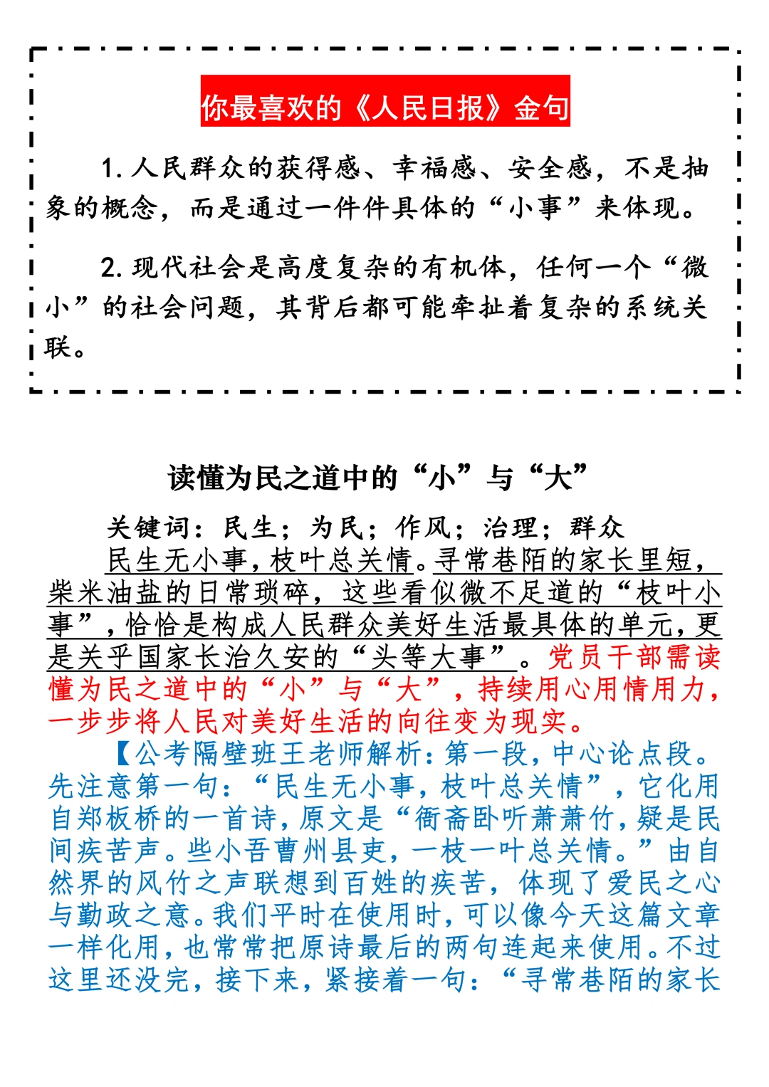 如何抄写:每日抄写文章发在“公考隔壁班王老师”账号,红色字是重点句和结构句,黑色字是正文,蓝色字是解析,大家抄写时不必抄蓝色字。建议先通读全文,做到心中有数再开始抄写,效果会更好。 关于文章:抄写文章来源于人民日报,但每篇文章我都根据申论考试要求进行了修改:一是重写或修改开头、结尾;二是统一段首句句式结构;三是调整段落字数,使文章结构更均衡;四是简化复杂长难句,使之更具可模仿性。每篇文章无论修改多少,都是基于申论考试要求,毫无对人民日报文章品评之意。(此处致敬人民日报)