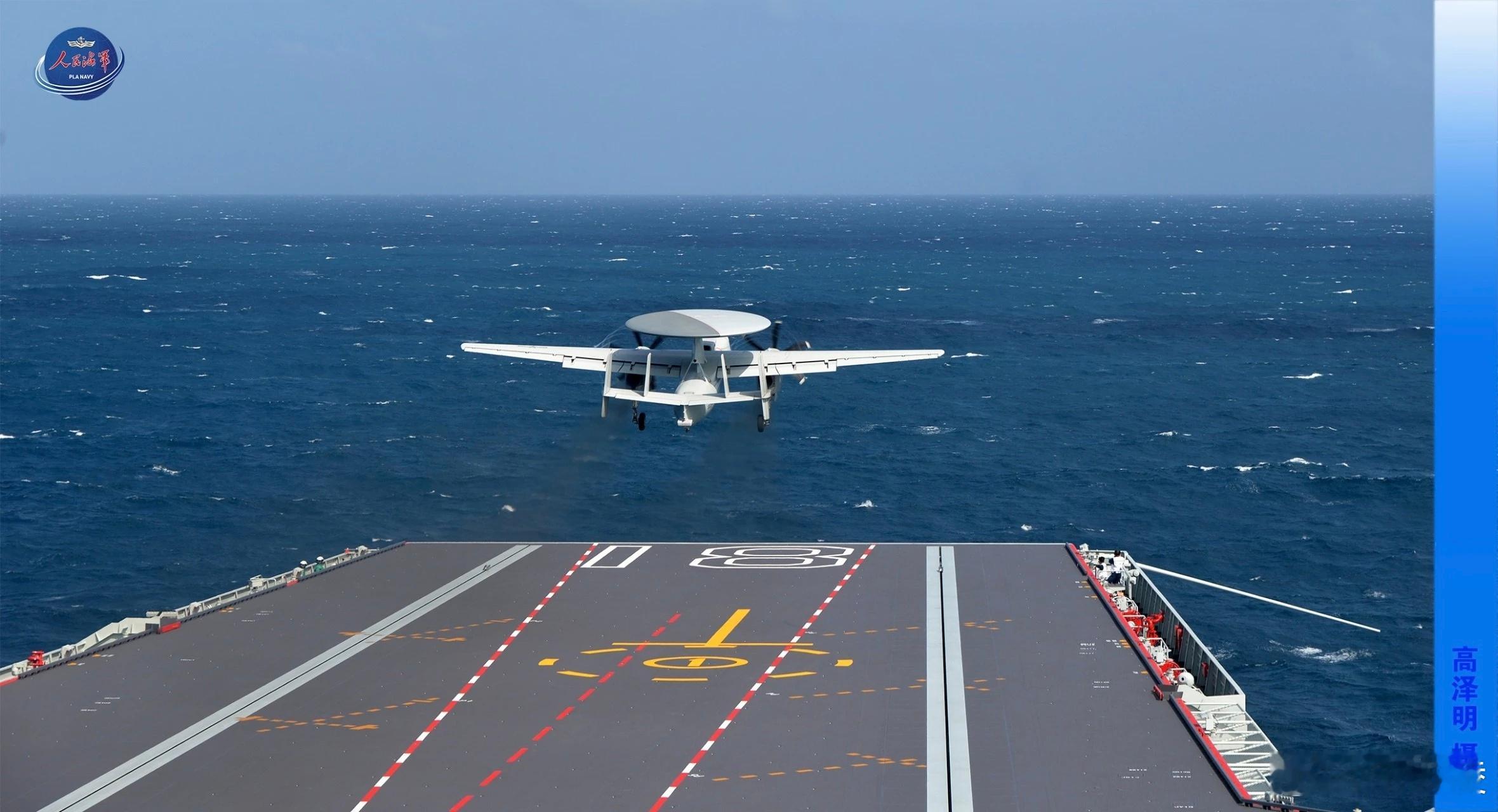 福建舰携延安舰、通辽舰组成编队,完成首次海上实兵训练。歼-35、空警-600等多