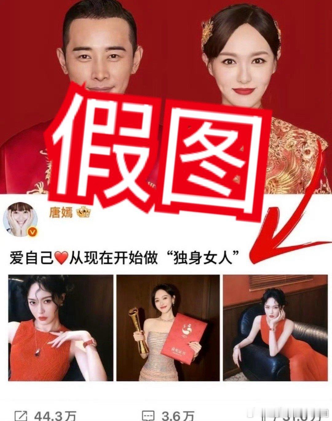 但凡翻一下唐嫣的微博,就会发现那条“独身女人”的微博是假图!唐嫣微博原文是“时间
