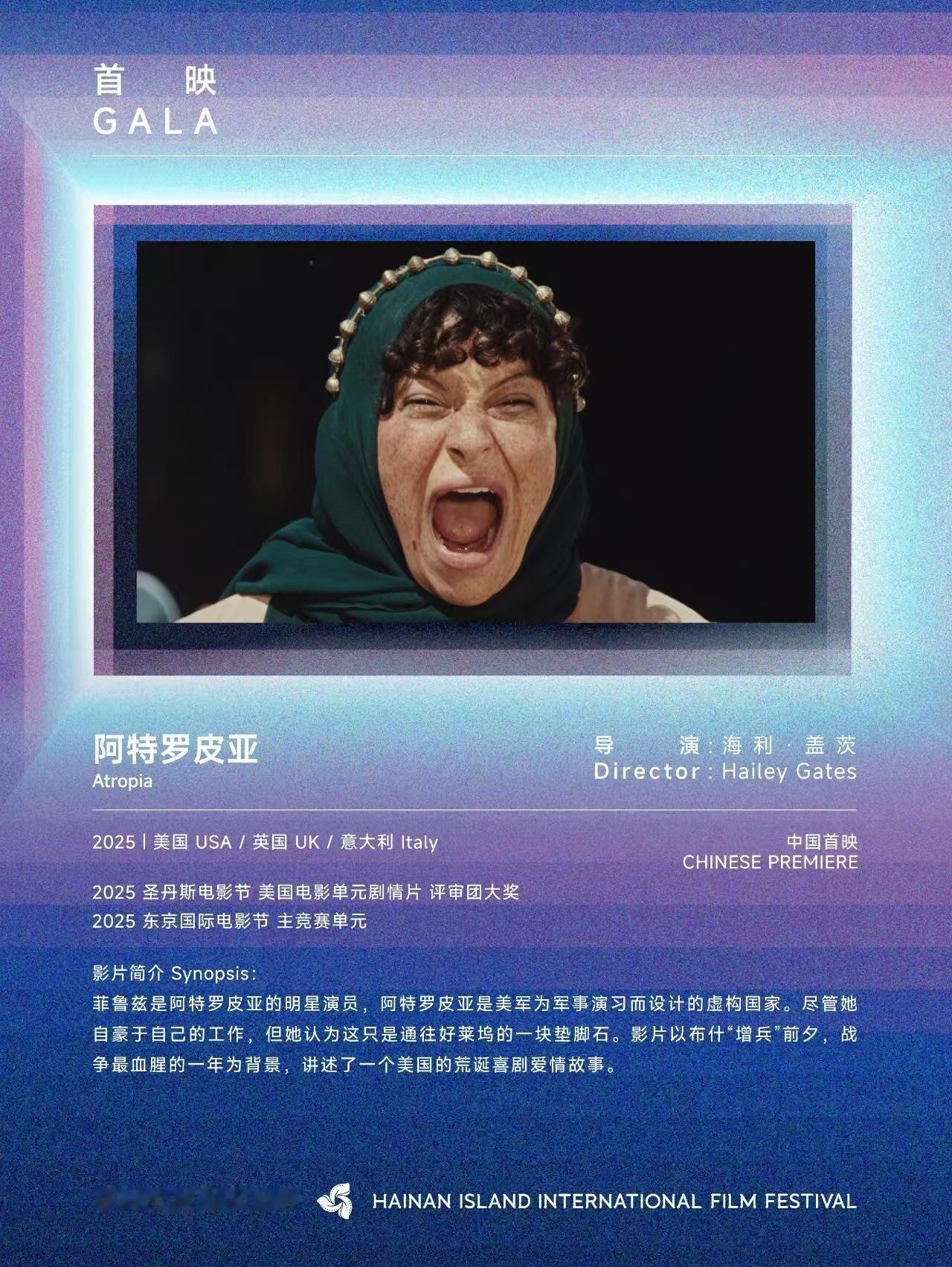 第七届「首映」单元片单发布海莉·盖茨《阿特罗皮亚》詹姆斯·麦卡沃伊《加州骗局》阿格涅丝卡·霍兰《弗兰茨》|拉夫·迪亚兹《麦哲伦》卢奎西亚·马特尔《我们的土地》马克·詹金《内华达之瑰》阿诺·戴普勒尚《两架钢琴》约翰娜·莫德《母亲的宝贝》本单元旨在汇集全年影展重磅作品,将全球电影大师的最新力作,与新兴导演的突破创举集中展呈。本单元所有影片均首次与内地观众见面,百分百新鲜呈现,将在12月3日至12月9日电影节期间展映。
