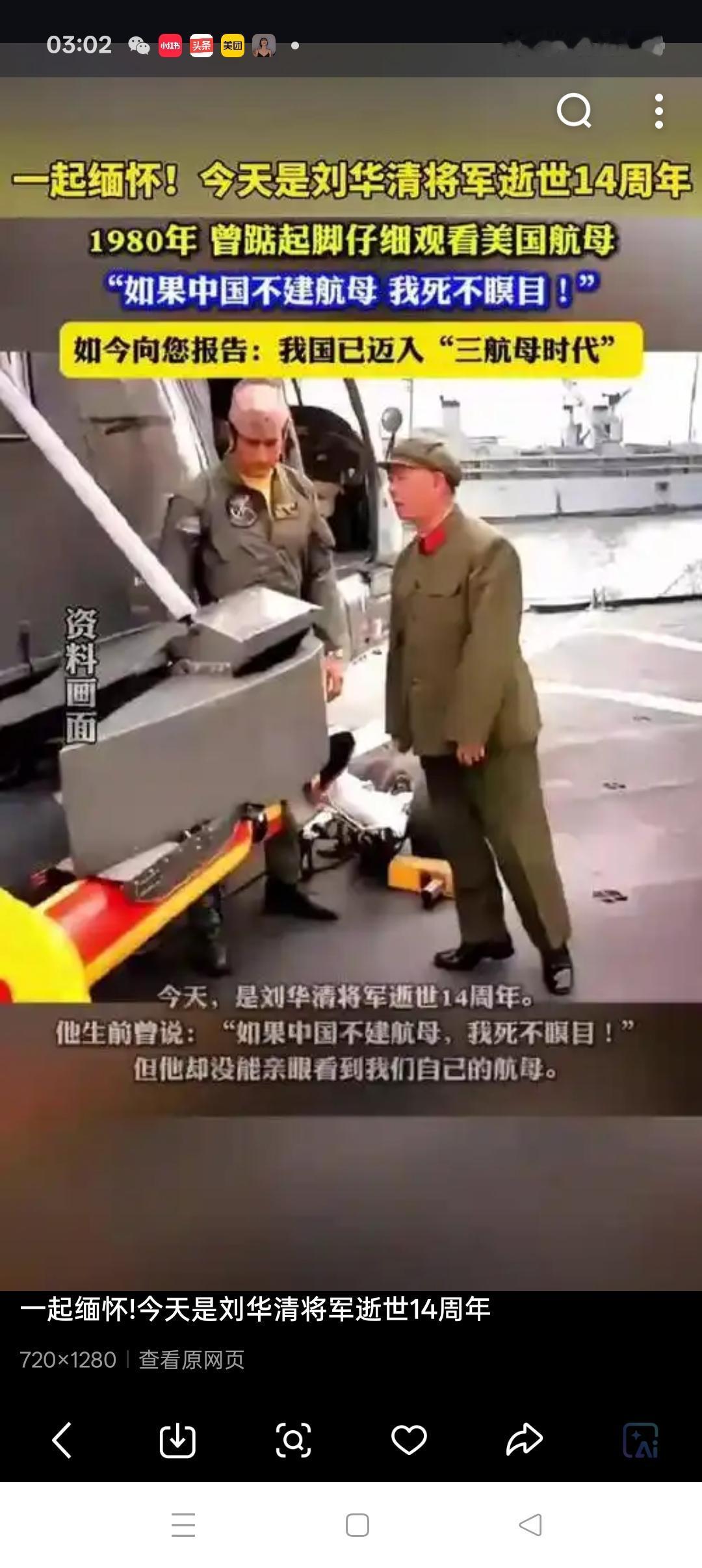 王师北定中原日,家祭无忘告乃翁! 日前,福建舰航母已成功的完成了入列后的首次海上实兵训练任务,返回三亚军港。看到此情此景,我们更加怀念我们的海军司令员刘华清将军,他曾说过,如果中国不建航母,我死不瞑目!他的那幅跕着脚观察美军航母装备的照片更是叫人泪目!如今,可以告慰刘老将军的是,现在中国不仅已进入了三航母时代,而且我们的福建舰已实现了歼35五代机等多型号战机的电子弹射起降,其稳定性水准已超越了美国最新型的福特号航母。王师北定中原日,家祭无忘告乃翁!福建舰入列后的首次海上实兵训练任务的成功完成,就是献给在天之灵刘老将军的最好礼物!