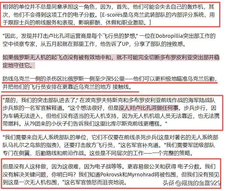 俄军“卢比孔”无人机部队发布战果数据。 自2024年10月以来的一年中,使用各类型无人机共击毙乌军538人。 其中,在25年3月库尔斯克战役中,击杀数据一度达到105人。 此后经过调整重新部署到顿巴斯地区,在25年10月开始,击杀数据再次猛增。 10月份击毙乌军107人, 11月份才过中旬,就已击毙乌军135人。 总计:538人 从击毙人数这一数据中,其实并不突出,并不能体现出“卢比孔”无人机部队的作战能力。 经常看俄军“卢比孔”无人机部队发布的视频的朋友,应该可以看出,其主要针对方向是乌军后勤补给线。 主要打击目标是乌军各种类型的装备,车辆,电子设备,固定翼无人机,以及轮换期间在路上,丛林里的乌军步兵,这让乌军头都炸了。 乌克兰无论是军方,或者军政界,均多次对俄军“卢比孔”无人机部队进行评价。绝大多数点评都是“负面的”,具体不过多描述。 乌克兰媒体曾经的一篇文章中,其中一段乌军对“卢比孔”无人机部队在前线的作用。从中可见对乌军造成的影响到底有多大。