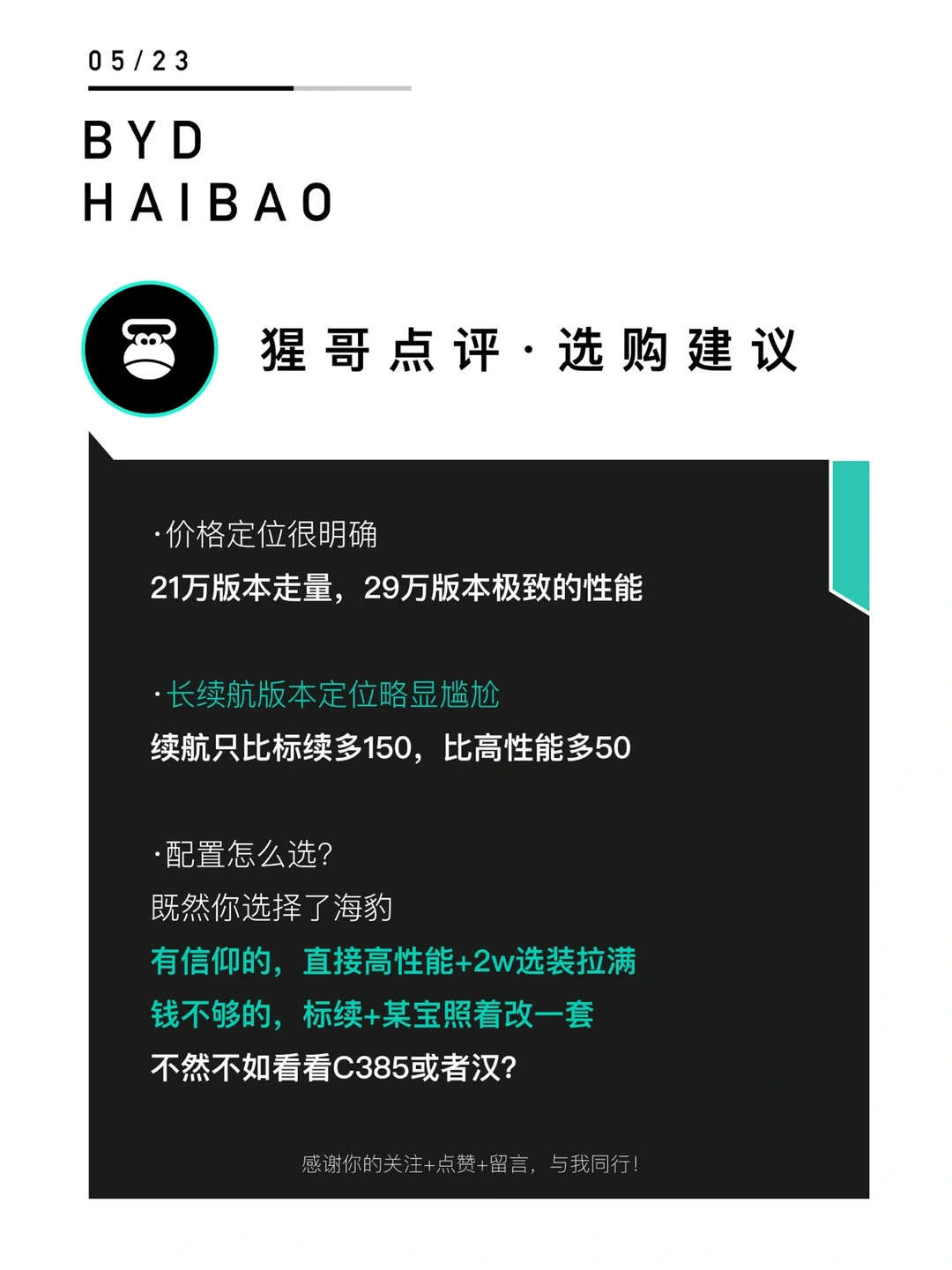 - 💰21.3w的起售价💪🏻对标MODEL3 28w起售价优势巨大🦭 ⚡标续、长续航、性能版三种配置可选,长续航版本定位略显尴尬,续航只比标续多150(贵5万),比高性能多50(便宜2.7万) 🏎高性能加运动套件绝绝子,我的青春回来了 ☀有信仰的,直接高性能+2w选装拉满,钱不够的,标续+某B照着改一套也很香[doge]