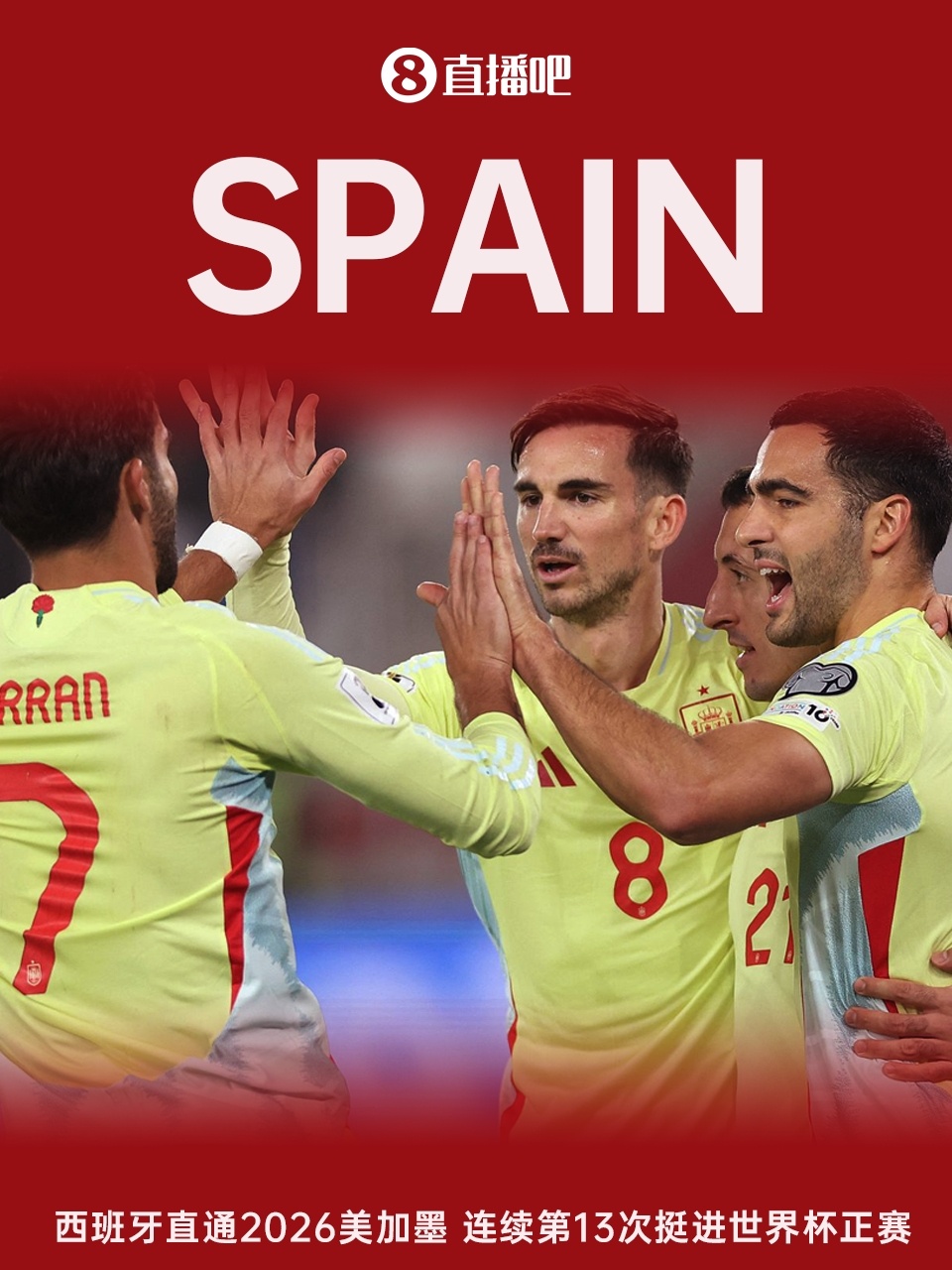 这是西班牙队史第17次晋级世界杯决赛圈,也是他们连续第13次挺进世界杯正赛,“斗牛士军团”自从1978年开始就从未缺席!2010年,西班牙在南非世界杯夺得冠军,而他们最近的两次参赛均止步十六强。