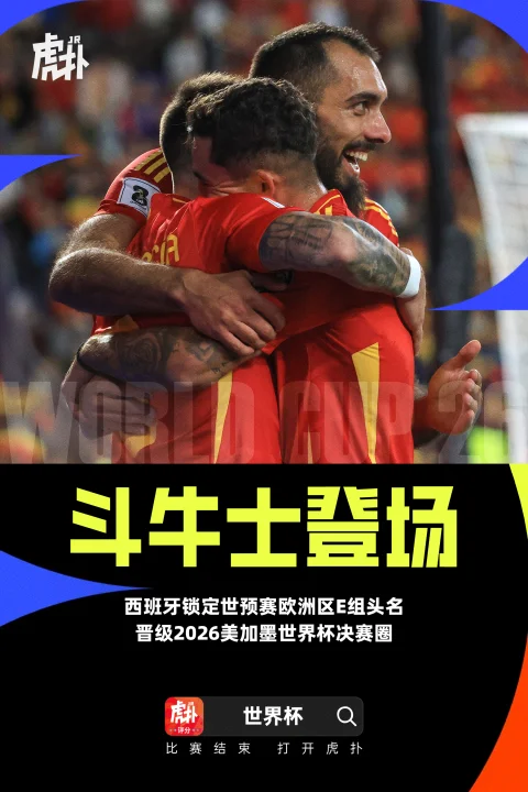 虎扑11月19日讯在今夜结束的世界杯欧洲区预选赛中,西班牙队在主场战平土耳其,以小组第一的身份直接晋级2026美加墨世界杯的决赛圈。