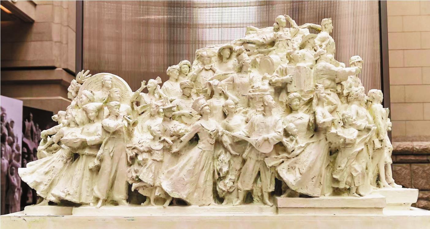 李象群的《我们走在大路上》、鲁迅美术学院集体创作的《走向胜利》《旗帜》《追梦》等雕塑作品以抽象语言传递信仰力量。雕塑艺术家吴为山点评:“辽宁雕塑继承性是其底蕴深厚的坚实基础,创新性是其生生不息的动力所在。”