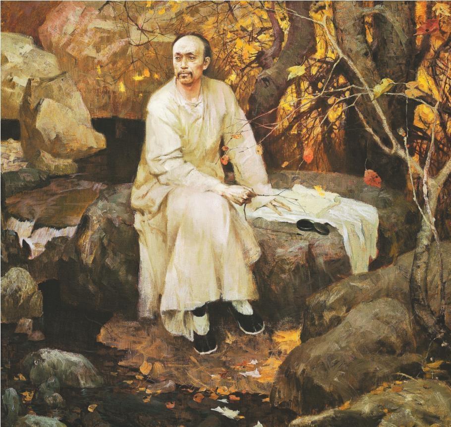 宋惠民在肖像画上善于调动情节、形象、环境、色彩、笔触等多种因素。如《曹雪芹》中的秋色山野、片片落叶,貌似平常、绝无雕琢之感,但在情绪的烘托和意境的创造上,却是点睛之笔,画出曹雪芹胸中对没落豪门的叹息。(点评人:许荣初)