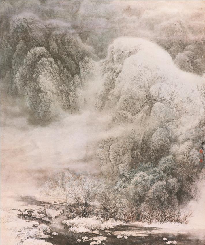 此作完成于1984年。在那个万物复苏的季节,画家内心对大自然的狂热痴迷、对审美的重新发现、对艺术创新的冲动,与北国的白山黑水一起苏醒,从此生机勃发。此作注重将小细部的笔触融入二维平面空间,增加了中国画的立体感。(点评人:张抗抗)