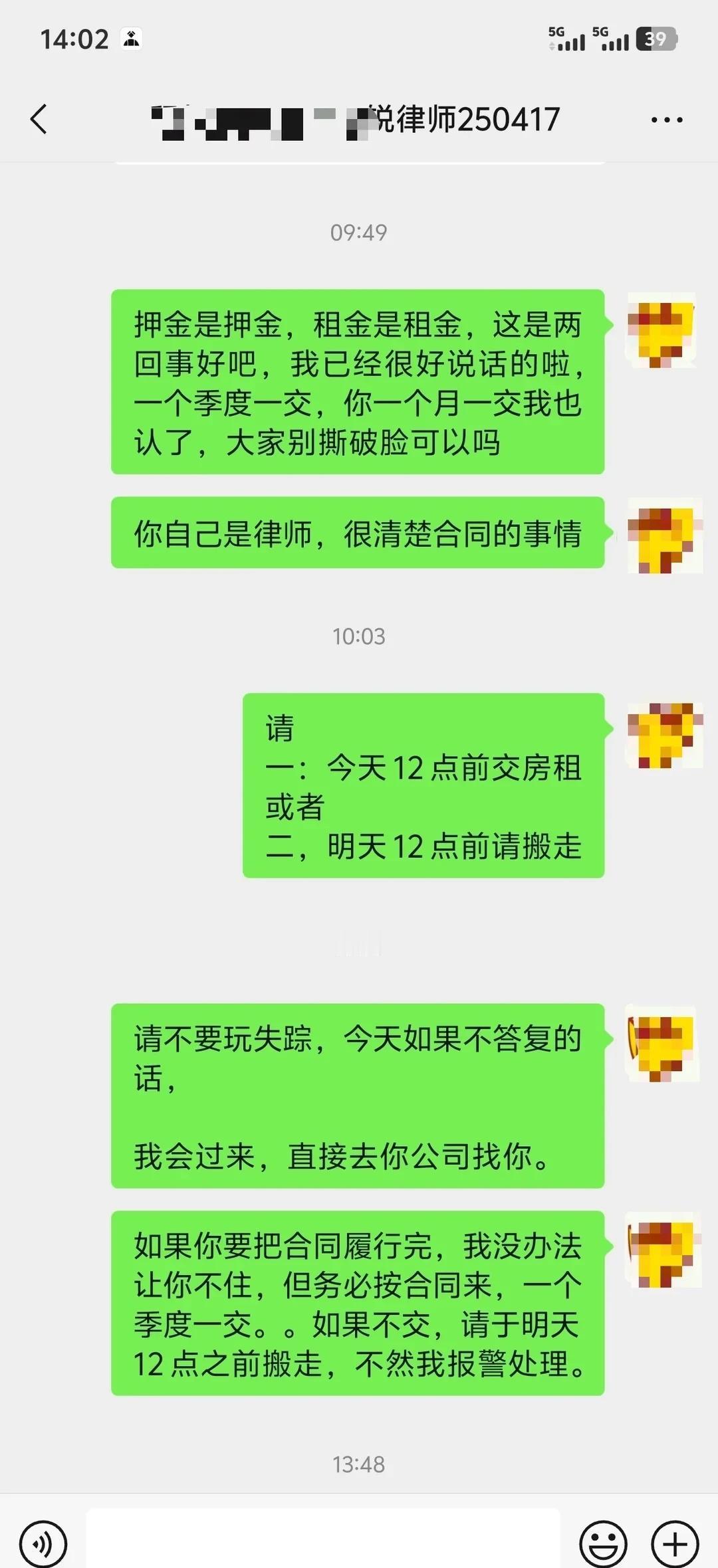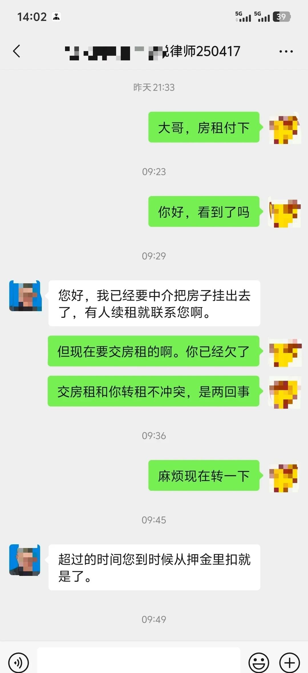 租客不付房租,不搬走,找帽子叔叔有用吗 通过中介租出的,租了半年就说不租了, 我同意转租,但租客不愿交房租了, 还玩失踪 沟通看图2图3 说押金代房租,怎么办, 找帽子叔叔有用吗 在线更新中 退房不退押金 保护自身权益 房租 租房避雷 老赖无处可逃 租房合同 奇葩租客 租房违约