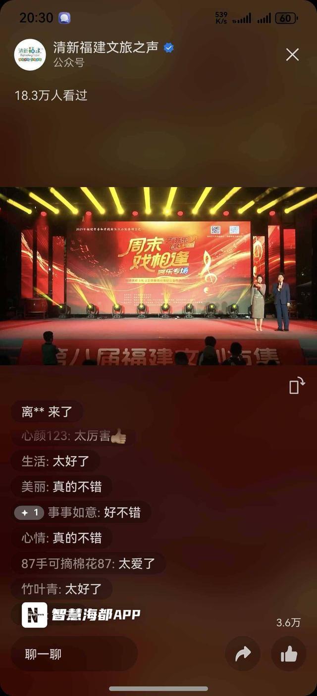 当晚“清新福建文旅之声”视频号直播间人气爆棚,吸引超18.4万人次观看。据统计,“福建艺超”IP全网传播量已突破2亿人次,收获上千名网友踊跃互动。