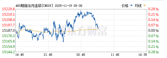 上证报中国证券网讯11月19日,富时中国A50指数期货在上一个交易日夜盘收涨0.08%的基础上高开,截至9时08分,主力合约涨0.03%。