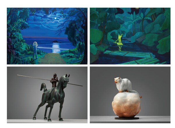 国际雕塑大奖得主、职业雕塑家陈松林,则以青铜、玻璃钢为"创作语言",让静态材质长出风的动态记忆。"凝神骑士系列"中的《凝神骑士–武僧》,用玻璃钢塑造武士坚韧姿态的同时,暗藏木棉般的温润质感;"生灵系列"《生灵–拜石》的夸张触角,似自然的通感符号,仿佛下一秒便会随穿堂风摆动;青铜作品《云–夜巡》体量小巧,却将光影跳跃的灵动藏于其中,宛如木棉树下落在肩头的光斑,完美诠释"刚柔并济"的艺术特质。