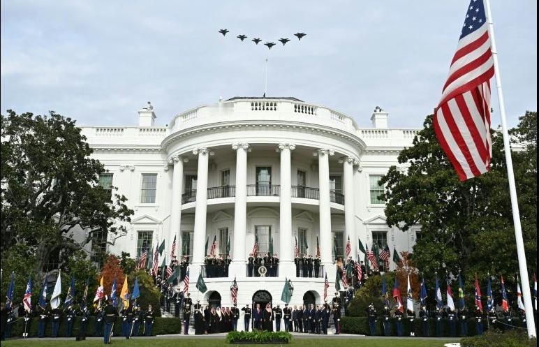 白宫高规格礼遇,特朗普全程热情似火 沙特实际掌权人、王储穆罕默德·本·萨勒曼自2018年卡舒吉遇害案后首次访问白宫,获得高规格接待。 尽管临技术保护的内部安全审查及国会潜在质询,特朗普仍宣布美国将向沙特出售高达48架的F-35隐形战机,这将是沙特首次购入该机型,或考验美国对以色列"定性军事优势"的承诺。此外,当有记者向王储提出令其难堪的刁钻问题时,特朗普公开为其辩护。 萨勒曼宣布将此前承诺的6000亿美元对美投资额提升至1万亿美元,预计涵盖人工智能基础设施、民用核能合作等领域,并将举行美国科技企业高管峰会。此外, 特朗普正推动沙特加入《亚伯拉罕协议》,但沙特官员重申与以色列关系正常化需建立在巴勒斯坦建国可信可行路径的基础上。