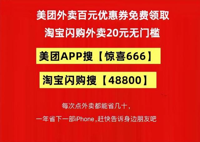 淘宝闪购作为淘宝平台旗下的超值特惠频道,不仅汇集了海量优质外卖商家,更推出了力度惊人的外卖优惠券,如今,除了淘宝闪购外,美团外卖、京东外卖也纷纷推出专属红包口令,让用户实现“花小钱吃大餐”,通过满减券、专属福利等形式降低用户消费成本!