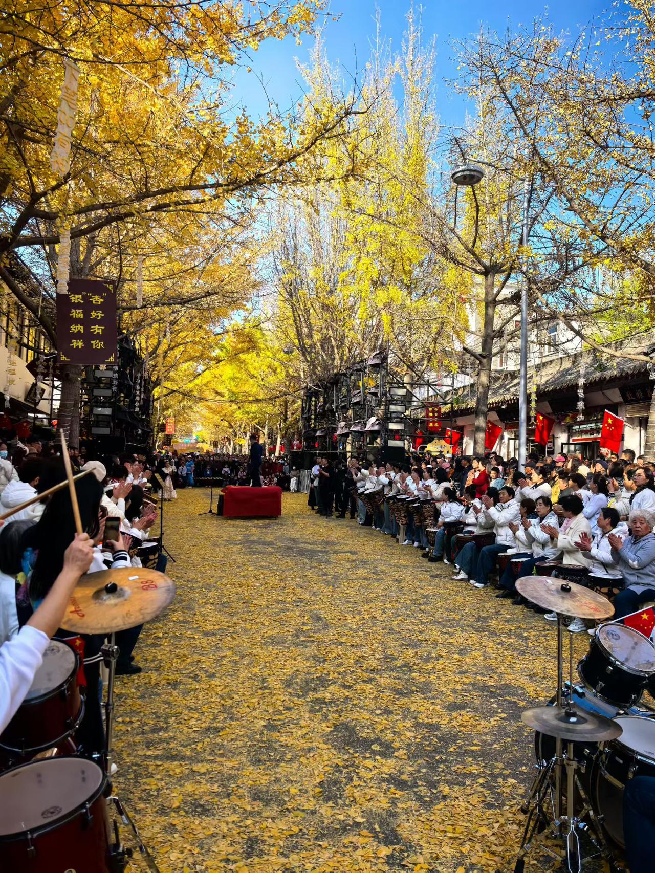 古塔与柿子🍂🍂🍂阳光穿过六百年的银杏树冠,金色叶片熠熠生光,洒在古老的金刚