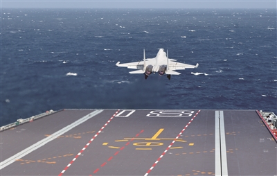 日前,海军福建舰开展入列后首次海上实兵训练。这是歼-15DT舰载机弹射起飞。新华社发