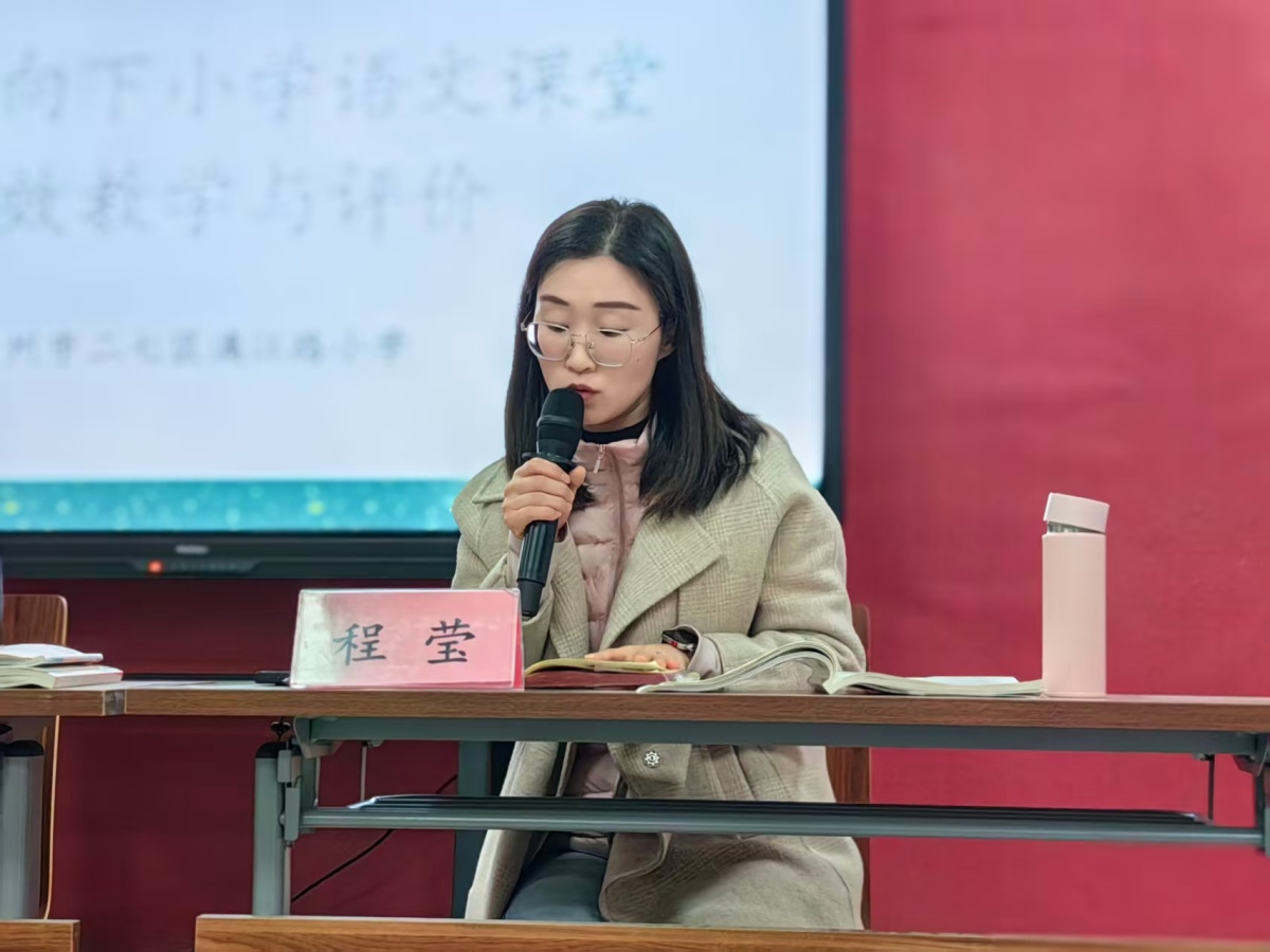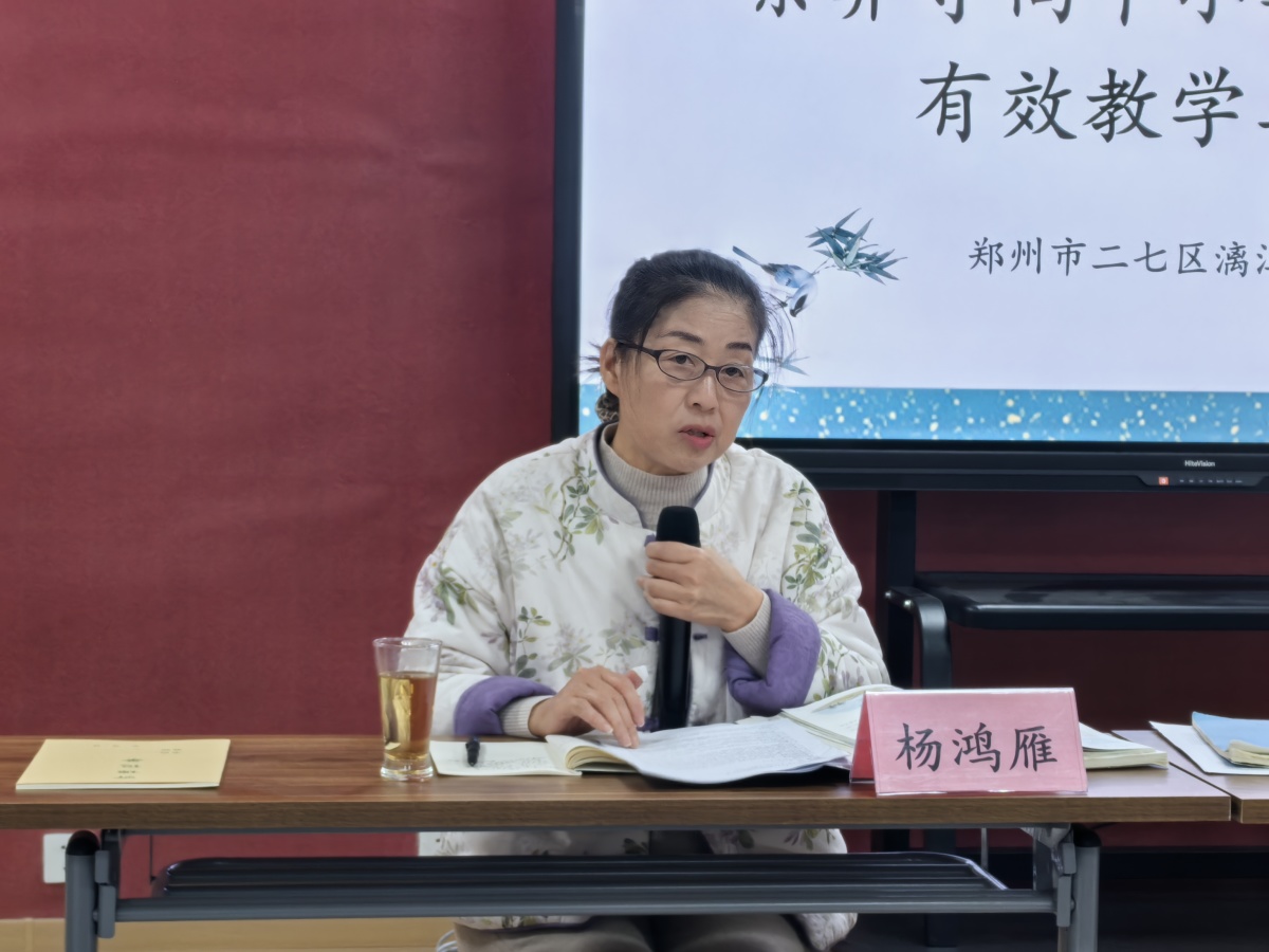 二七区教育发展研究中心教研员杨鸿雁、程莹老师随后接力指导。杨鸿雁老师针对青年教师成长痛点,提醒大家要“读懂课文、读懂课标、读懂学生”,以教师教学用书为抓手精准把握重难点;程莹老师感谢余昆仑老师的专业引领,在肯定课堂亮点的同时,引导教师明确“教什么、怎么教、教得怎么样”,并结合具体环节指导教师如何恰当解读教材、开展单元统整与系统规划。
