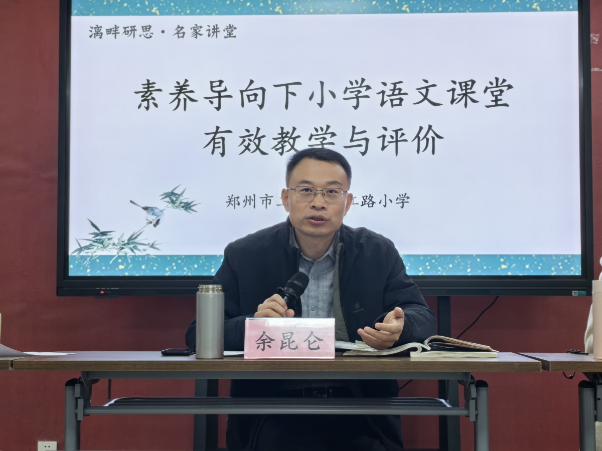 随后,郑州市基础教育教学研究室小学语文教研员余昆仑老师展开精准指导。他肯定了两位教师的精心准备与课堂实践,围绕“素养导向下小学语文课堂有效教学与评价”核心,抛出三大关键改进建议:“始终保障语文要素的有效落实、始终坚持学生立场与学科立场、始终保持教学评一致性”,并结合课标要求与教材实例逐条拆解分析,让教师们茅塞顿开。针对两节课,余老师进一步细化指导:《读不完的大书》需紧扣教材教参,优化提问设计与朗读方式,前置评价标准;《我们眼中的缤纷世界》应打开学生思路,重视单元统整性,合理运用习作例文辅助教学。