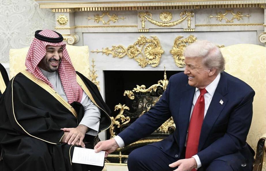 太谄媚了!当地时间11月18日,沙特王储萨勒曼受邀访美,美国不仅罕见安排了轻骑兵开道、空中战斗机飞越欢迎,而且特朗普还率领一众美国主要内阁成员迎接,两人在白宫会谈期间,沙特王储突然宣布将对美承诺投资从6000万美元直接提升至1万亿美元后,特朗普谄媚地不停与对萨勒曼握手说道:“能成为您的朋友是我的荣幸,您能来也是我的荣幸。”此外,特朗普还强调沙特宣布对美投资1万亿美元是对美国国家安全的有力支持,因为不仅能够创造大量就业机会,只有真正的盟友才能如此信任美国……与此同时,特朗普还宣布将向沙特首先出售F-35战斗机,并且正式授予沙特主要非北约盟友地位。从特朗普迎接萨勒曼的排场和各种表态不难看出,无疑这是特朗普第二任期内迎接外国领导人最重视的一次,可见,沙特“出钱买安全”的做法让特朗普相当满意。