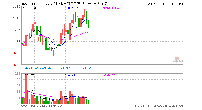 科创新能源ETF易方达(589960)业绩比较基准为上证科创板新能源指数收益率,管理人为易方达基金管理有限公司,基金经理为李博扬,成立(2025-09-10)以来回报为8.43%,近一个月回报为13.28%。