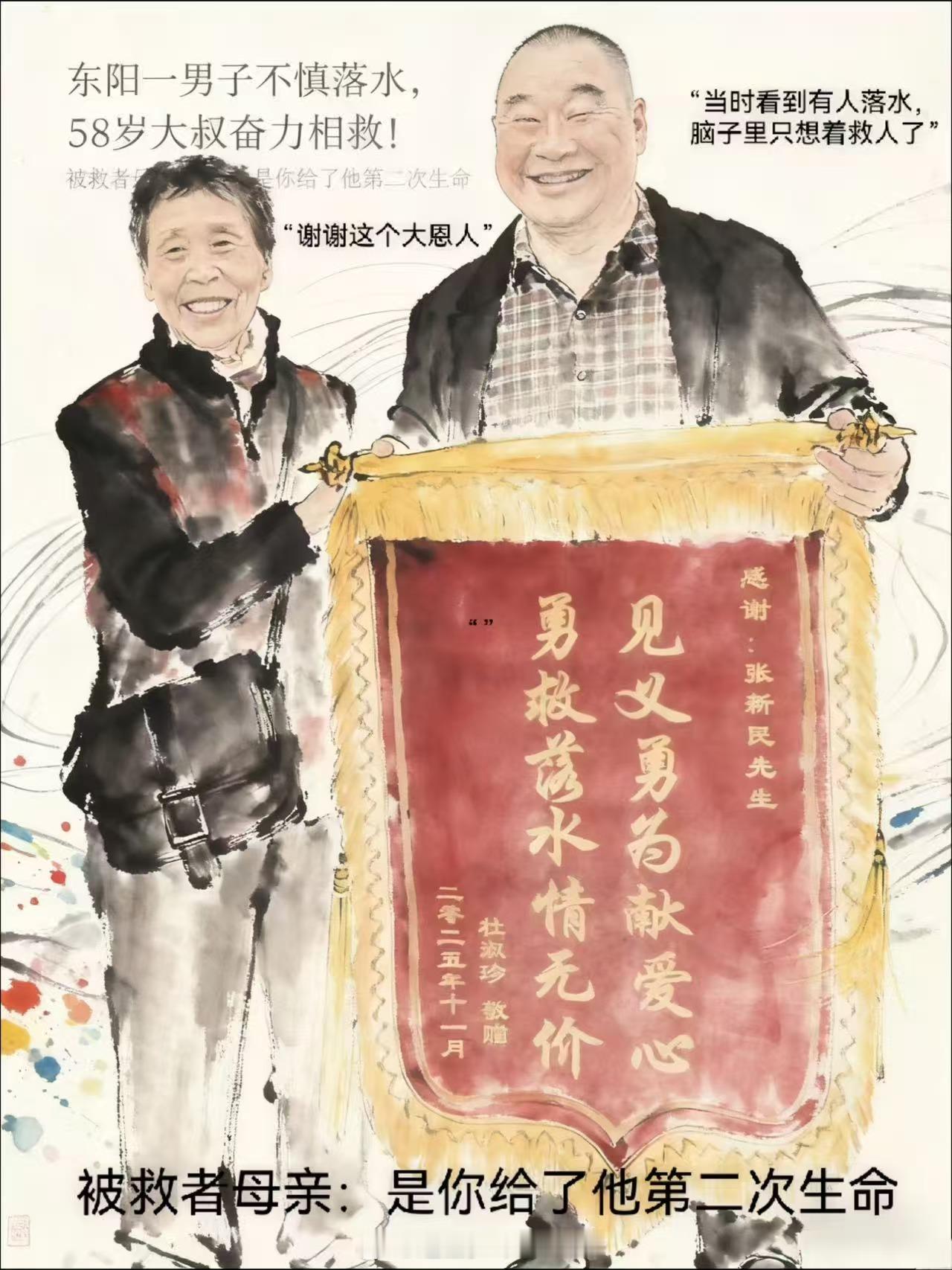 【】近日,金华市民张新民在公园散步时,发现一名男子不慎溺水,他毫不犹豫跃入冰冷的湖水,奋力将落水者救上岸。这已是张新民第二次英勇救人,早在17岁时他就曾救起1名落水男孩。事后,获救男子的母亲专程送来锦旗,含泪致谢:“太感谢你了,如果不是你及时出手相救,我们可能再也见不到我儿子了,是你给了我儿子第二次生命。”(来源:东阳市融媒体中心)