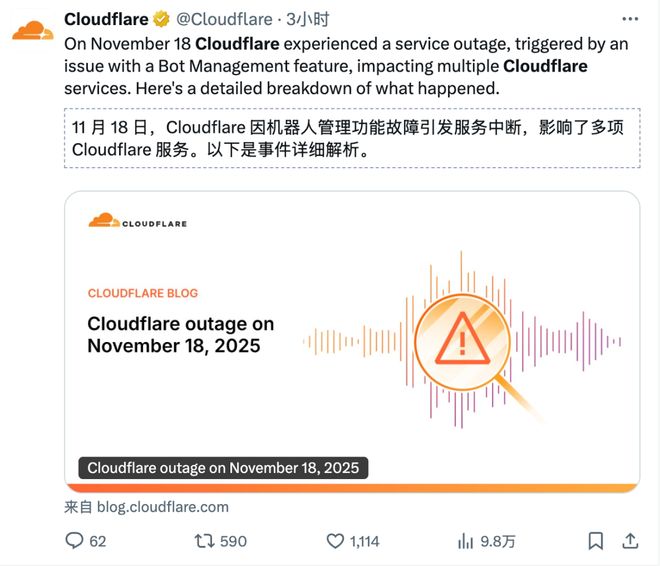 Cloudflare这次导致全球断网的技术故障,其实是一次典型的「好心办坏事」。