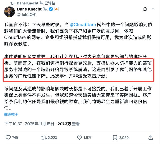 Cloudflare的CTO赶紧发了个申明:是我们的错误,立正挨打。