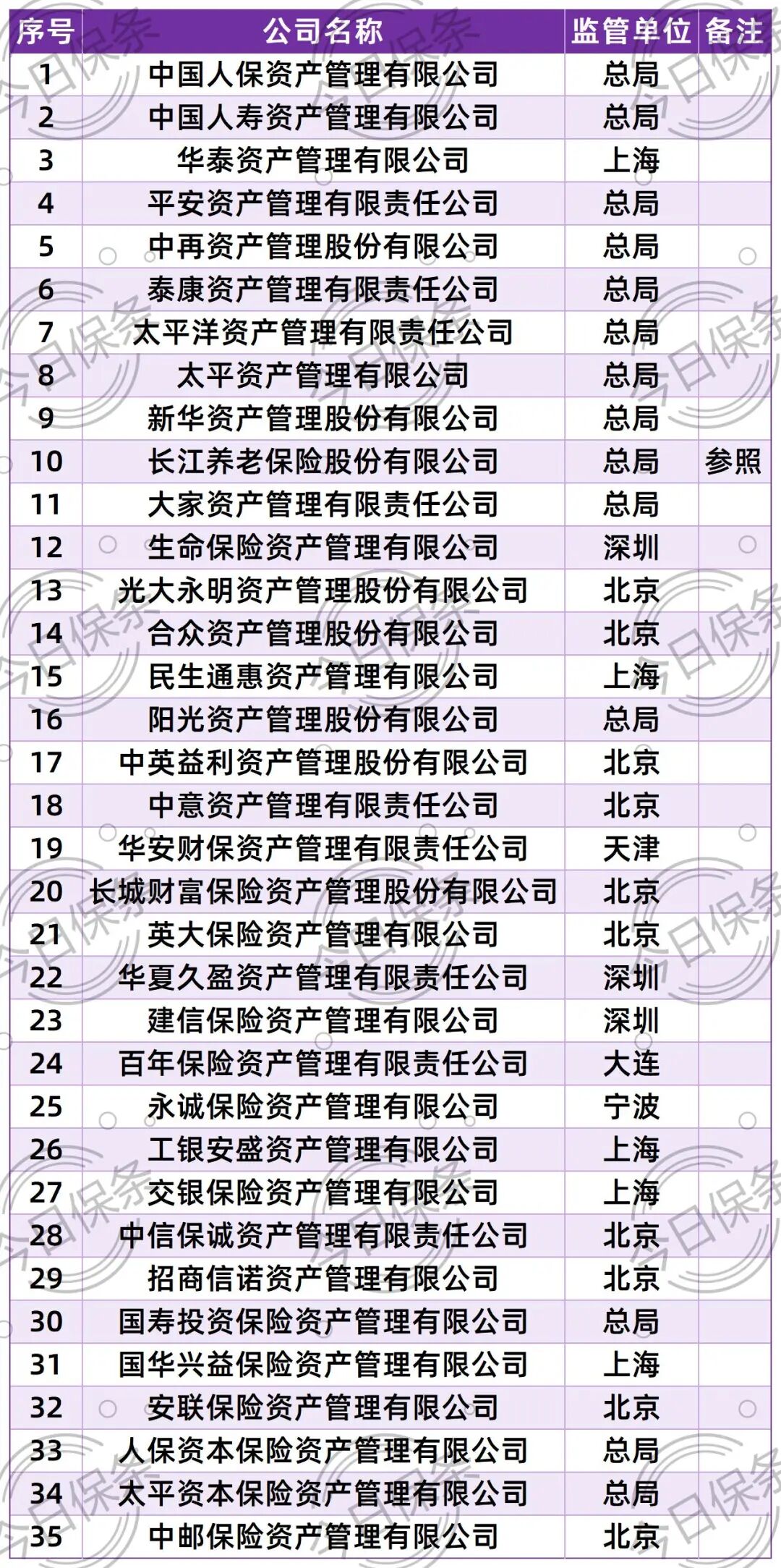 另外据国家金融监管总局公布的截至2025年6月末的数据,保险资产管理公司以及参照资管公司管理的公司共有35家: