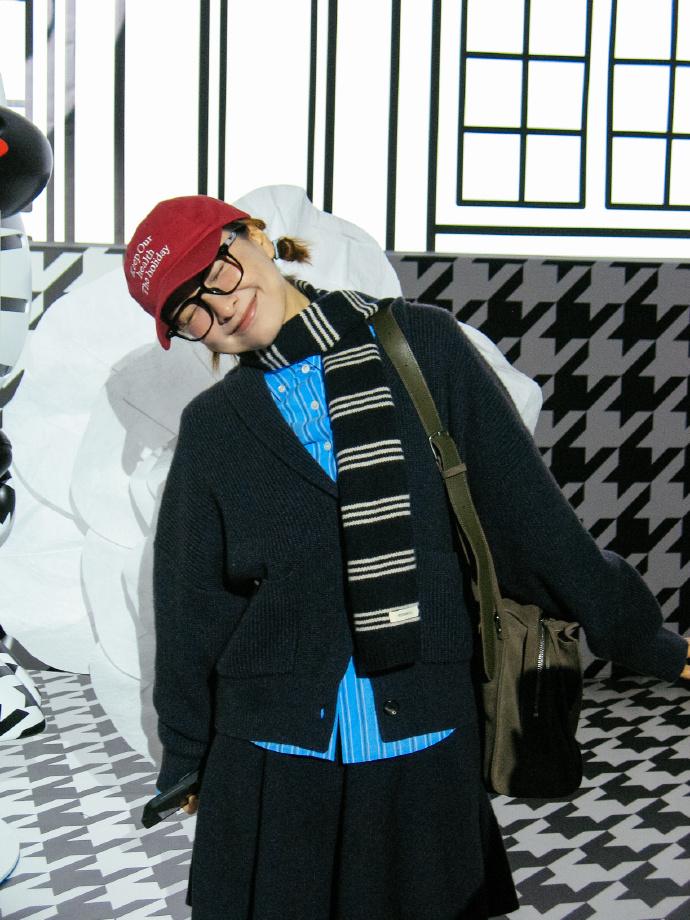 最近吴昕在外出的时候搭配的很有潮流时尚感,看起来也格外的显年轻,气质也很不错。 吴昕里面穿蓝色衬衣,外面套着深色的开衫,两件衣服叠穿起来凸显出了满满的层次感。 她下身穿黑色的裙子,脚踩黑色的靴子,秀出了纤细的大长腿,也很有俏丽时尚范儿。 吴昕脖子上围着时尚的条纹围巾,增添了浪漫感和文艺气息,效果很出众。 她头戴红色棒球帽,还戴着一款黑框眼镜,展现出了潮流之美。 吴昕背着一款复古风格的包包,看上去很有潇洒魅力。总的来看她越变越年轻了,像个迷人的少女。