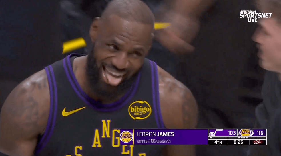 比赛进行到第四节,湖人前锋勒布朗-詹姆斯已经送出12次助攻。