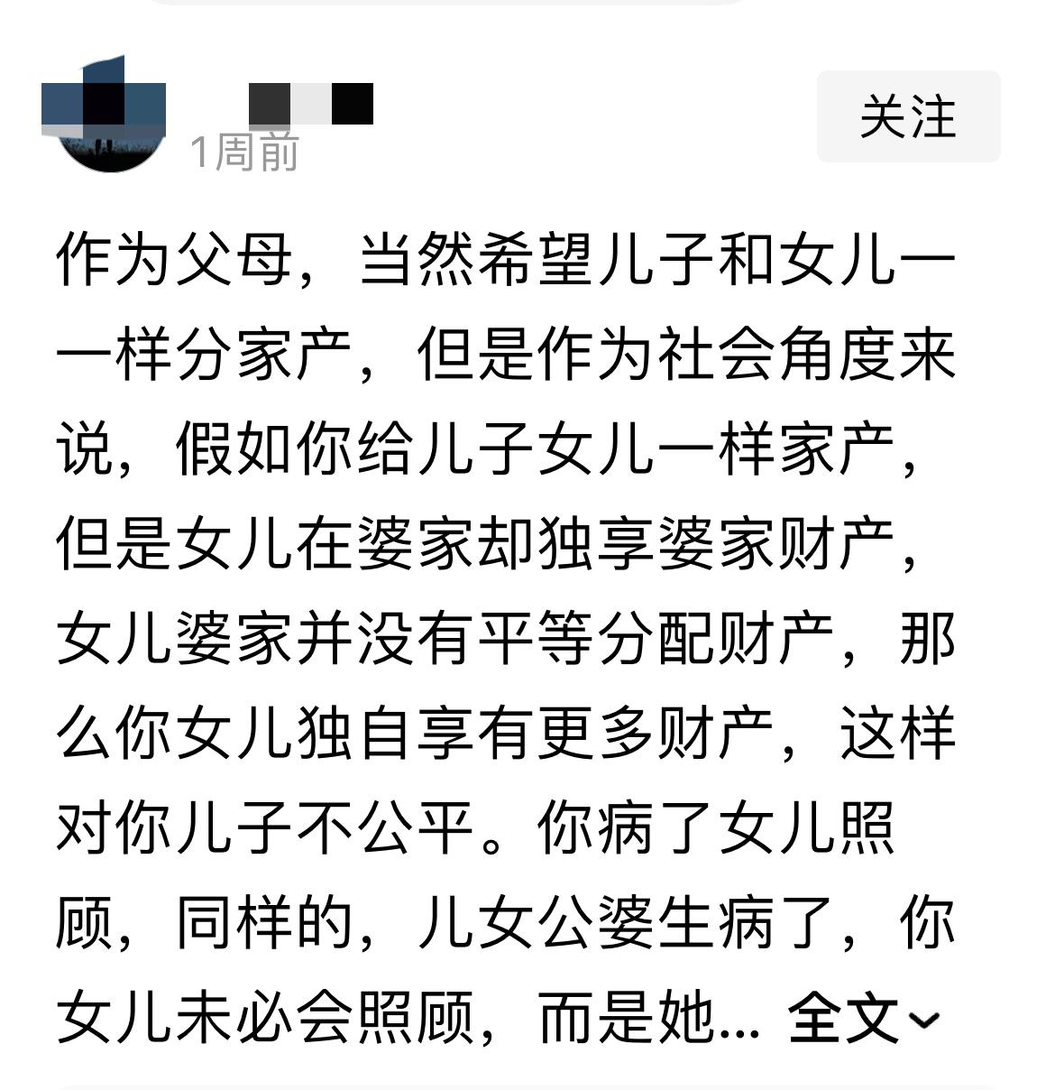 都给我看笑了!真是嘴巴两张皮,横竖都是理,为了不给女儿财产,正反都是有理! 家里有女儿,把财产给女儿了,那就是给女婿了,因为女儿不是独立的人! 家里有儿有女,财产给了女儿,女儿还要独享婆家的财产,对儿子不公平。这个时候居然女儿成大女主,还独享婆家财产!都是婚前财产,根本没有份! 真实:一个农村的女儿,在娘家没有财产,那是给儿子的,到婆家,婚前的房子车子票子都是婆家的,甚至彩礼都是借贷平台!她啥也没有!也就是自己打工赚钱养自己!
