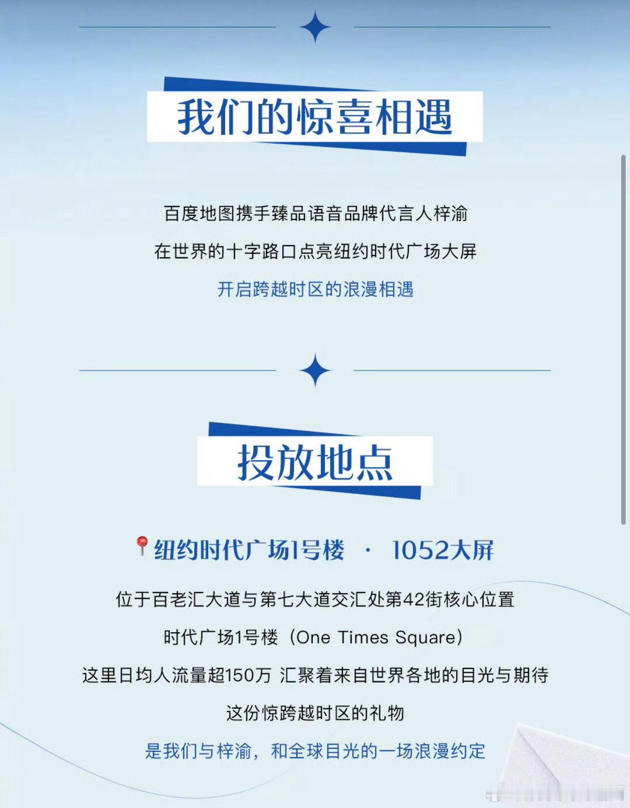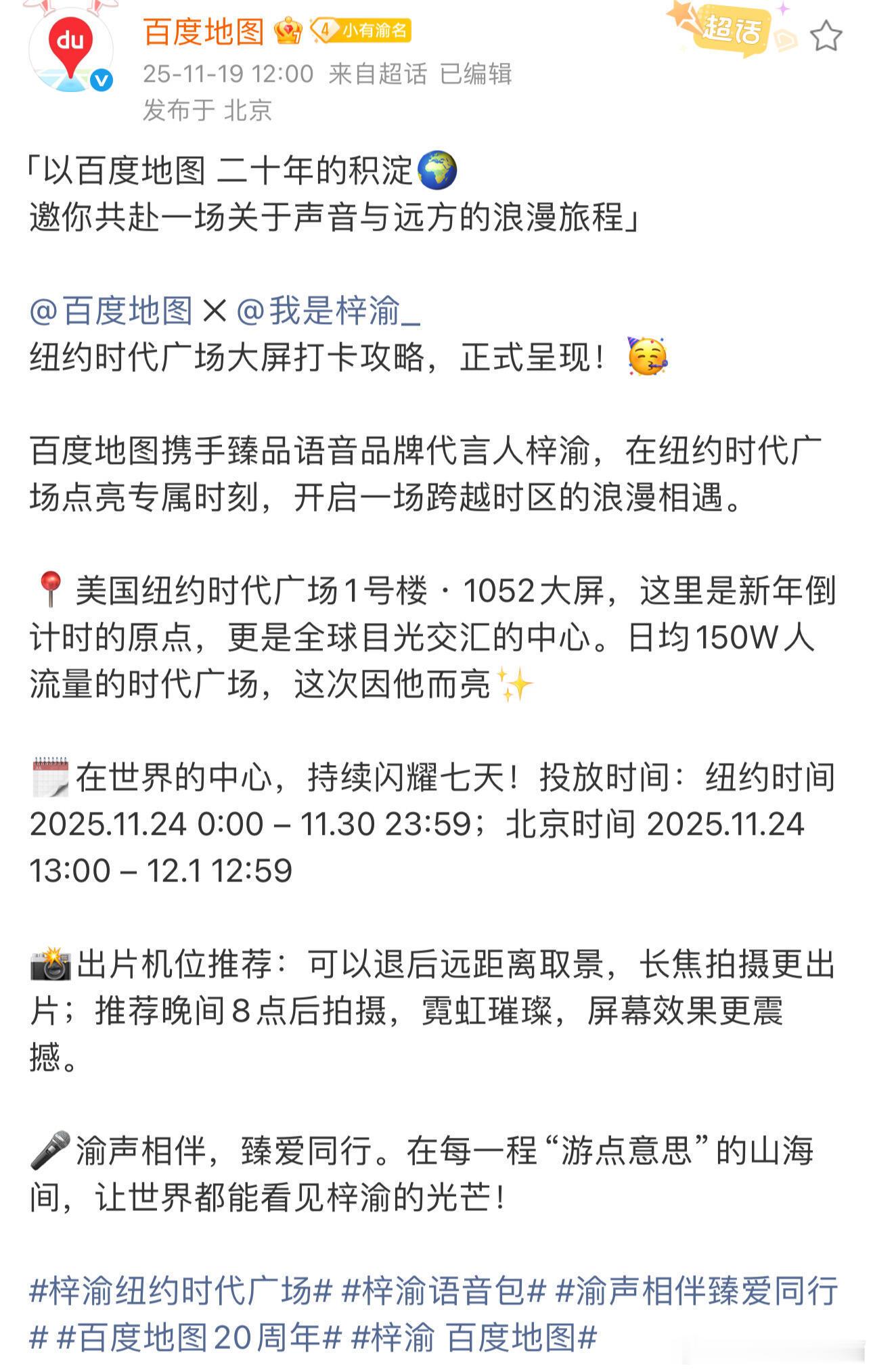 梓渝纽约时代广场大屏幕要来了!!!gismow才做完曼谷核心商圈的各种宣传,百度爸爸又来接力!一整周的时代广场大屏活动宣传刷脸,甚至贴心给出了打卡机位,这一次梓渝国际站的外国粉丝们也是终于可以打卡上梓渝的大屏啦
