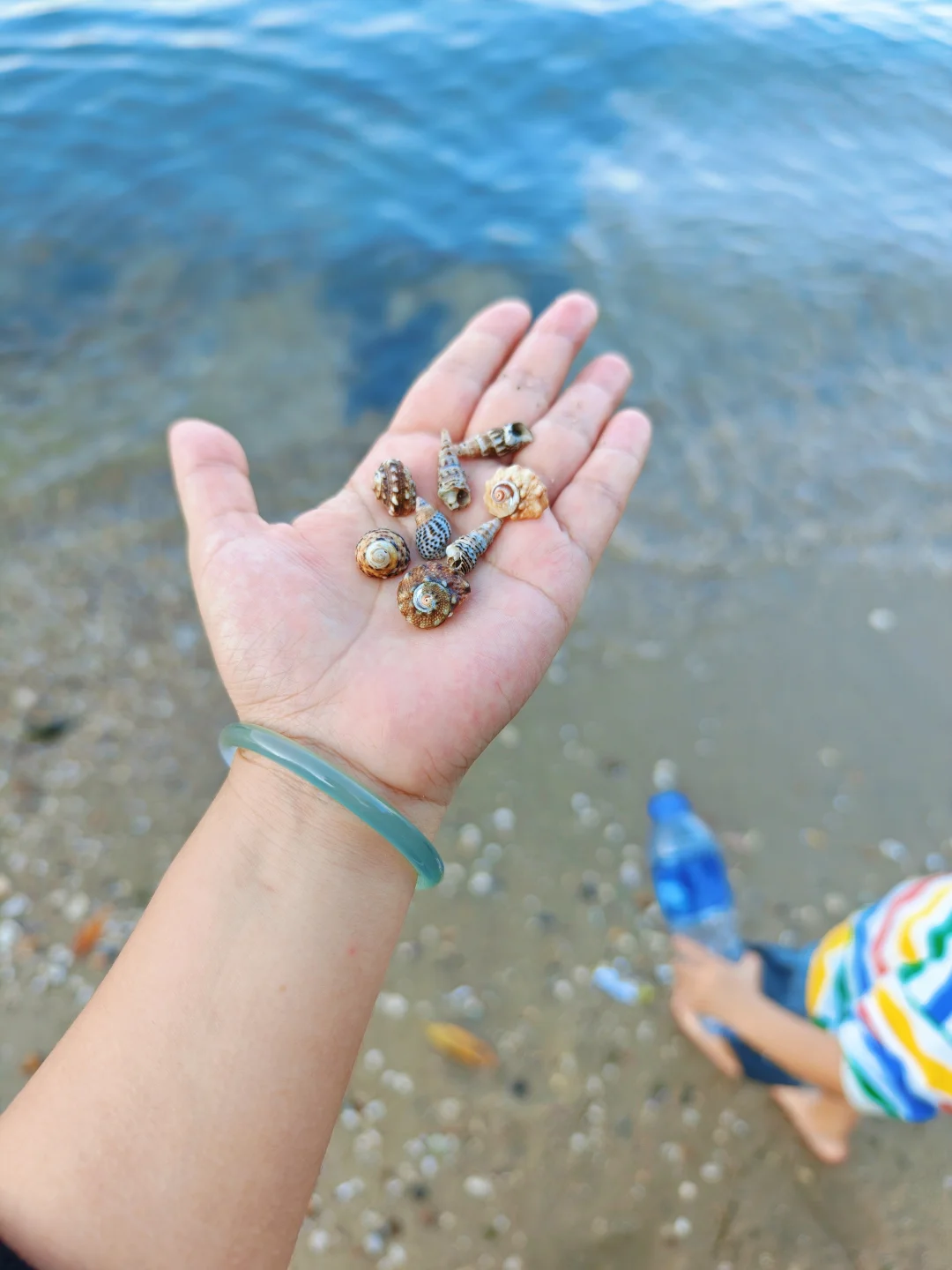 ⚠️重点提醒❗全程牵紧娃的手,只在浅滩活动;挖完及时洗手,记得保护海洋环境,鱼类、大贝类和寄居蟹放生呀🐚我一般带走的就是一些贝类的壳和小海螺。