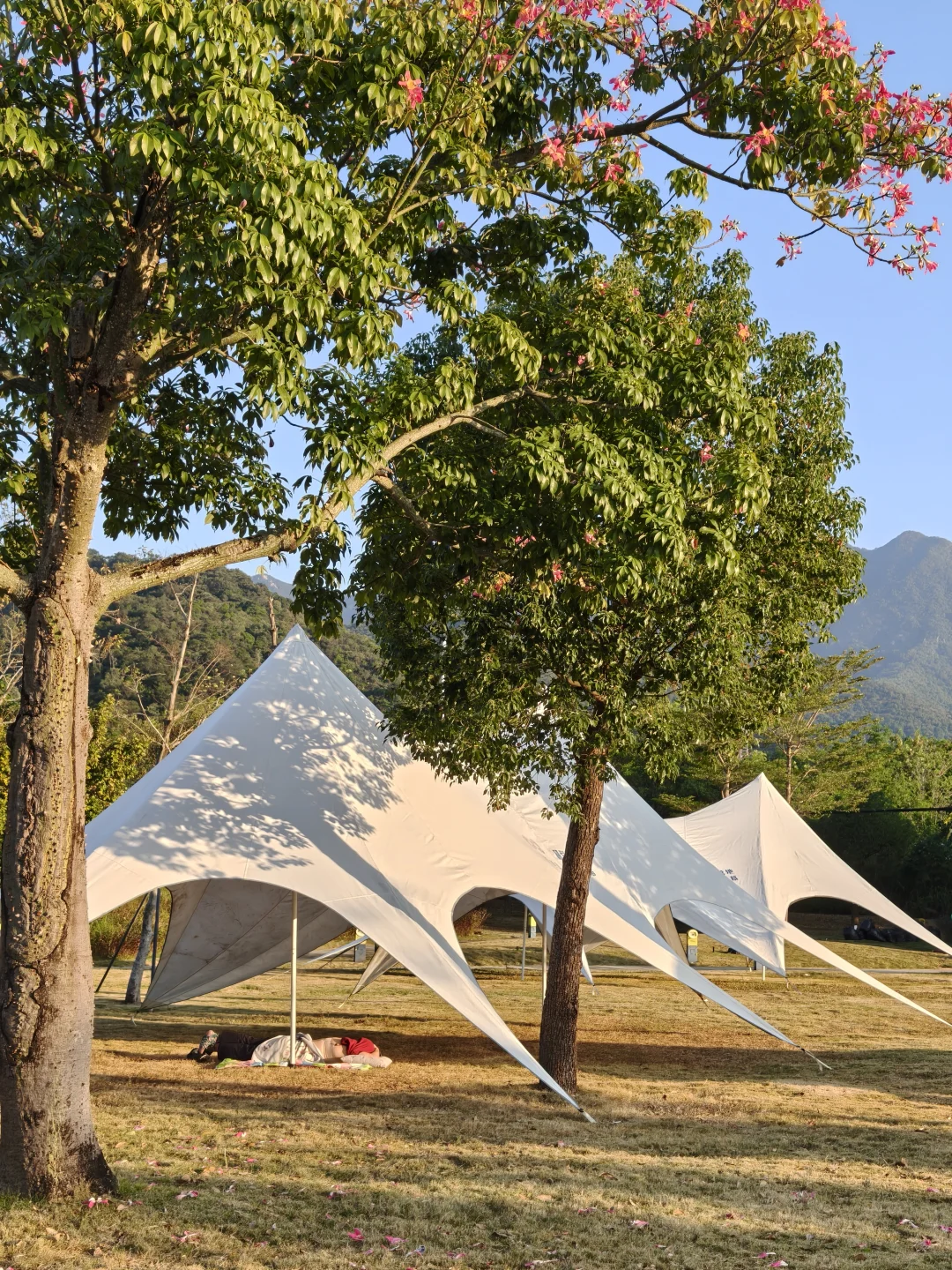 赶海结束直接去滨海草坪露营,步行 5 分钟就到!草坪平整有树荫,面朝大海背靠红树林,拍照超出片~