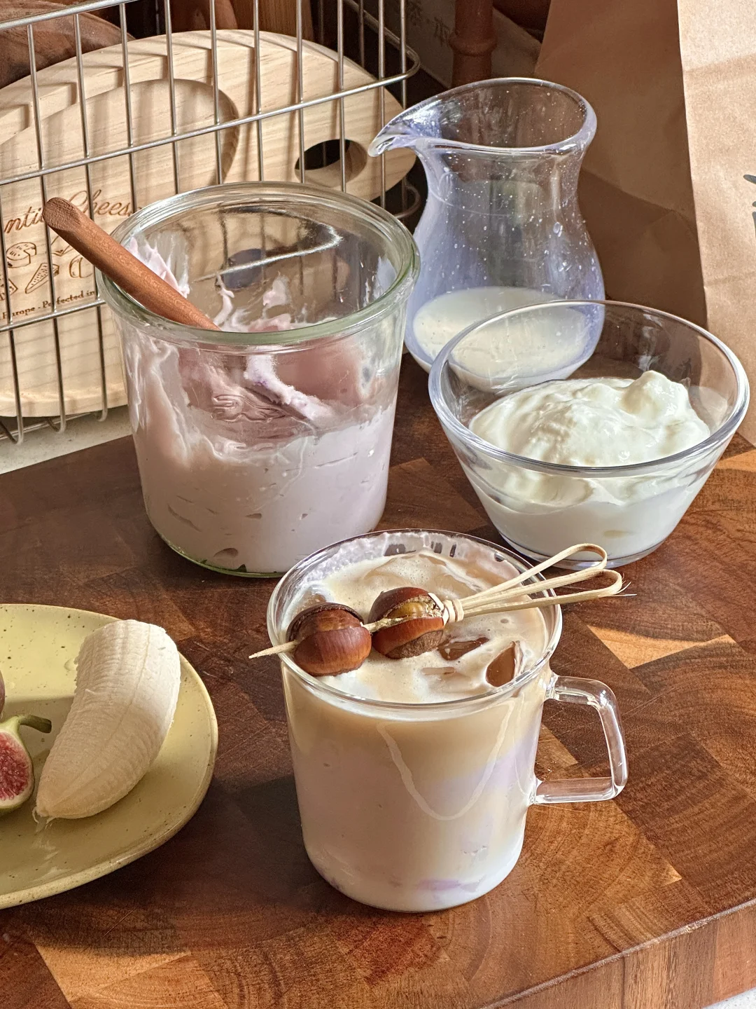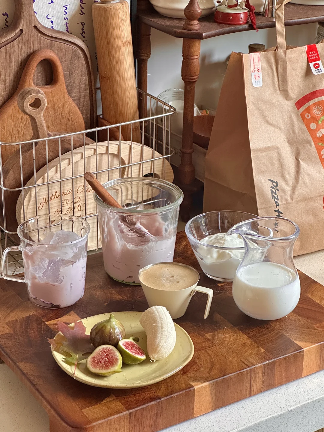 等外卖的时候顺便做了酸奶水果杯与芋泥栗子拿铁
