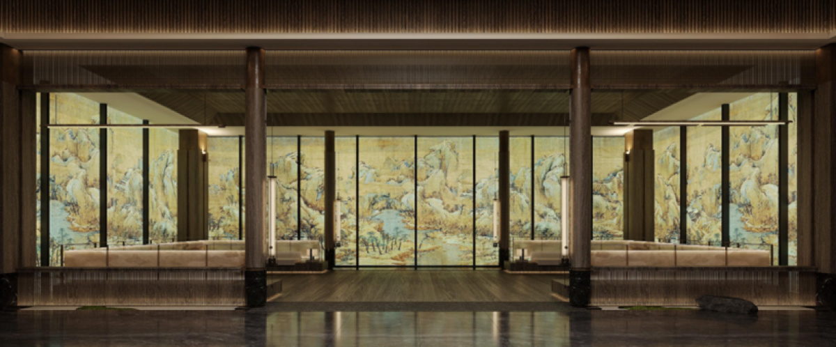 步入府门,最令人惊艳赞叹的,莫过于观景台上“光电玻璃”所带来的裸眼3D奇观!通透时与天色交融,启动时则化作无形的光影结界,虚实交错间,现实与幻境在此悄然重叠。立于观景台上,仿佛踏入一幅悬浮的《千里江山图》画卷,开启一次穿越时空的千年对话。