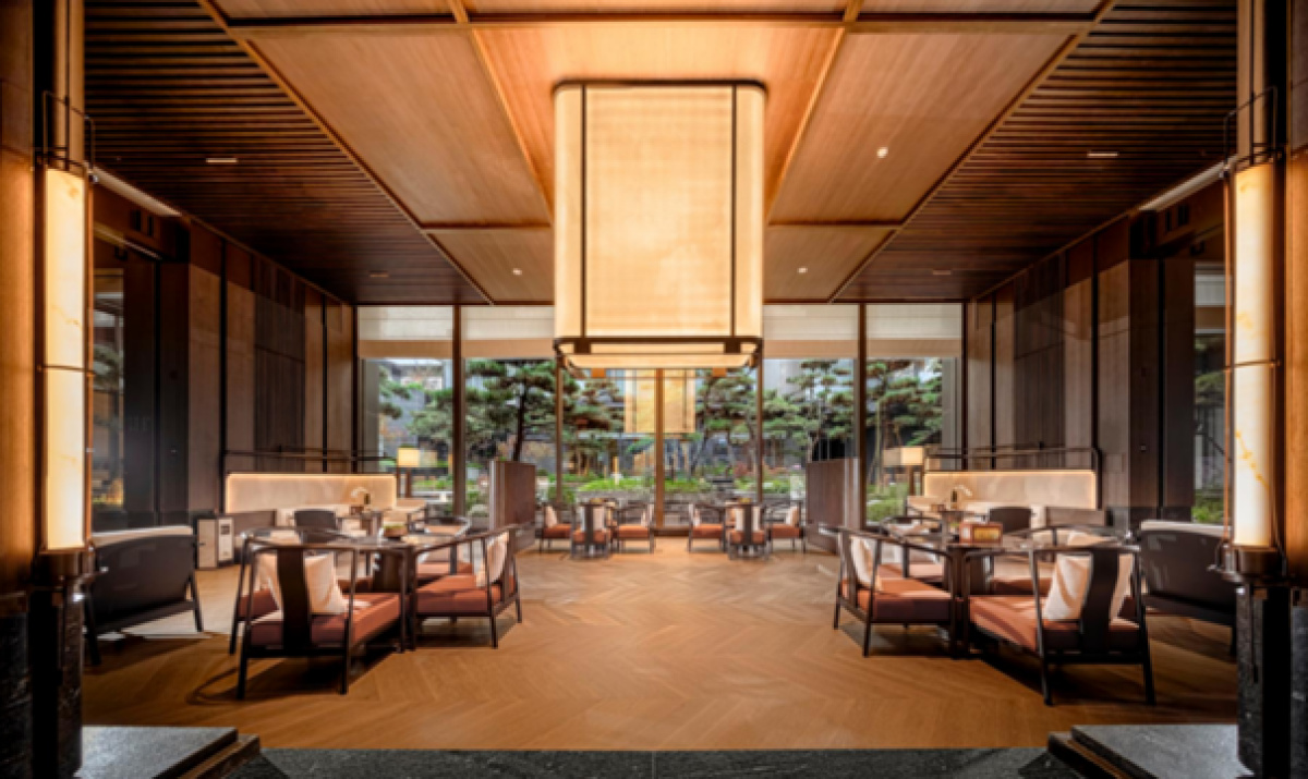 摒弃直线的硬朗,以弧形勾勒温柔风骨。会所的门庭柱体、庭院石阶、室内线条,皆以弧形为主旋律,石材与弧形工艺的精妙融合,再辅以精心打磨的弧形倒角,于细微处尽显宋风的温润典雅,让建筑自带“如玉在侧”的悦目质感。