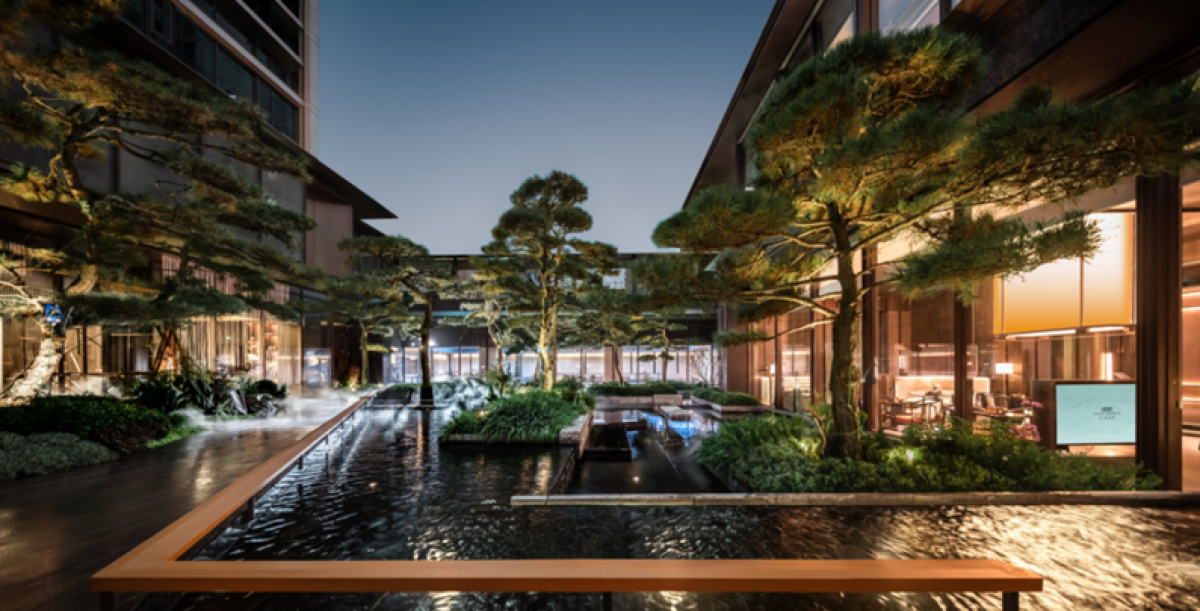 由十四株形态各异的油松构成的“松韵”庭院,中原罕见。松影婆娑,飞瀑流银,山石叠翠,清泉映月,恍如走入宋徽宗《听琴图》中,松下听琴,心随云远。